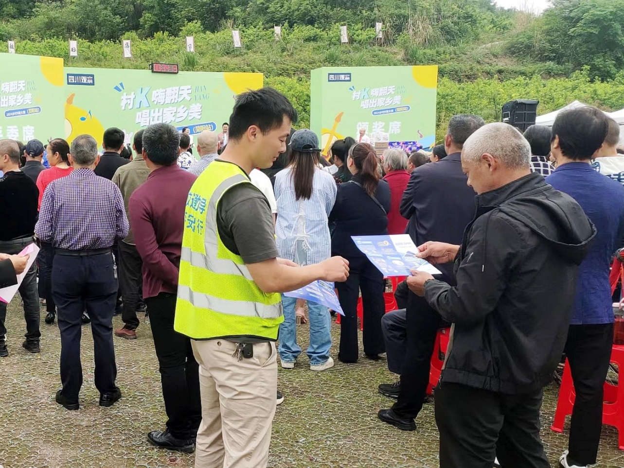 為進一步提高廣大農(nóng)村居民的交通安全意識,有效預(yù)防各類道路交通事故,簡陽市道安辦組織公安交警和禾豐鎮(zhèn)交管辦拓展宣傳渠道,從過去的“搭臺唱戲”轉(zhuǎn)變?yōu)椤敖枧_唱戲”,利用K歌大賽期間人多、車多,人流集中等有利時機,將道路交通安全宣傳與全民K歌活動深度融合,組織公安交警和交管員勸導(dǎo)員走進K歌現(xiàn)場持續(xù)開展文明交通宣傳勸導(dǎo)活動。