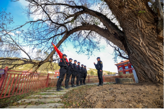 家鄉(xiāng)在千里之外的山東,妻兒又在康定生活的他,常年以霍爾廣場警務(wù)室為家,醉心于特巡警工作,深耕于打防管治,以召之即來之勢給予群眾看得見的滿滿安全感。2016年,楊進前原本通過了省公安廳組織的警務(wù)技能實戰(zhàn)教官選拔,但眷戀第二故鄉(xiāng)爐霍的一草一木,主動放棄了在省廳戰(zhàn)訓(xùn)基地工作的機會,選擇了在革命老區(qū)縣披星戴月的執(zhí)著堅守,傾情守護街頭小巷的“人間煙火氣”,更換來“霍爾章古”的安然入睡和繁花遍地。