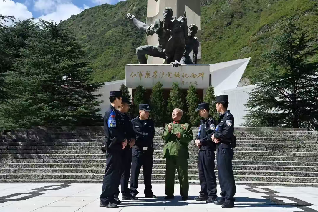 “我14歲就參軍,誓死保家衛(wèi)國!這枚勛章是我在藏民團參加平叛剿匪戰(zhàn)斗中冒著槍林彈雨獲得的。我要感黨恩、聽黨話、一輩子跟黨走!”近日,在紅軍飛奪瀘定橋紀念碑前,四川省甘孜州瀘定縣公安局瀘橋派出所專門組織青年民警聆聽曾任道孚縣公安局長的86歲熊志榮老人橫刀躍馬縱橫天地間的傳奇故事,帶給他們最真的感動和最強的感召。據(jù)悉,這是瀘定縣公安局當下深耕“忠誠警務”的一個縮影,只為鍛造對黨絕對忠誠的紅城衛(wèi)士。