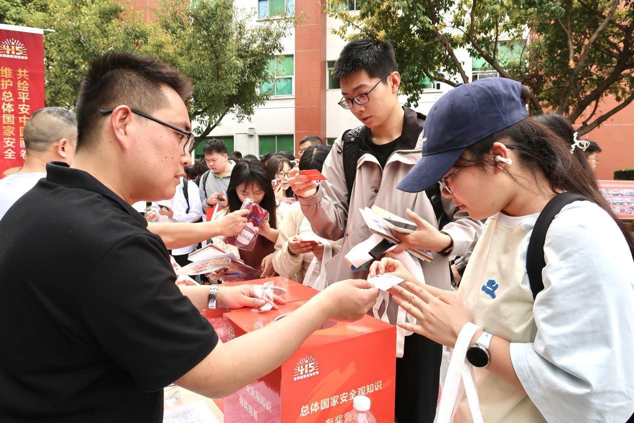 4月14日,在西華大學(xué)校園內(nèi),擺放的普法主題展板吸引同學(xué)們駐足學(xué)習(xí),這些展板通過圖文并茂的形式呈現(xiàn)了國家安全領(lǐng)域、典型案例等豐富內(nèi)容。學(xué)校禮堂內(nèi),郫都區(qū)委黨校的孫建國老師以“貫徹總體國家安全觀”為主題向300余名師生闡述了總體國家安全觀的核心要義。郫都區(qū)多部門在現(xiàn)場設(shè)置宣傳展位,向師生們發(fā)放國家安全等宣傳手冊,并提供相關(guān)法律咨詢。