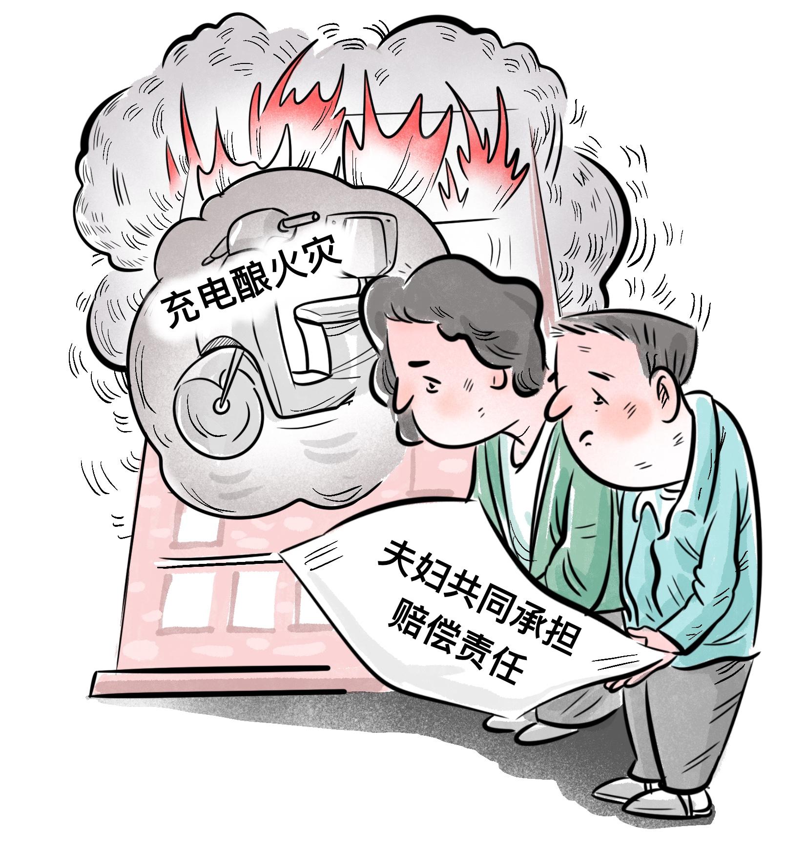 法官認(rèn)為,周女士因違規(guī)將電瓶車推回家中充電而引發(fā)火災(zāi),致使同樓層的桂女士因吸入濃煙不幸身亡,在本次事故中存在嚴(yán)重過錯,因此應(yīng)對桂女士的死亡后果承擔(dān)主要賠償責(zé)任。鑒于楊先生與周女士系夫妻關(guān)系,且涉案電瓶車系二人婚姻關(guān)系存續(xù)期間購買并用于家庭,楊先生雖未直接參與充電行為,但其未能及時發(fā)現(xiàn)并排除車輛安全隱患,也未在周女士違規(guī)充電時予以制止,未盡到充分的注意義務(wù),因此楊先生與周女士構(gòu)成共同侵權(quán),應(yīng)當(dāng)承擔(dān)相應(yīng)的賠償責(zé)任。
