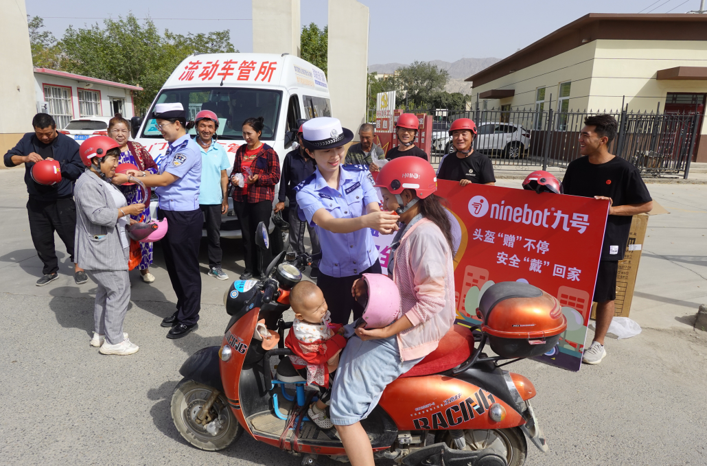 為從源頭上消除交通安全隱患,全力確保騎乘電動(dòng)自行車、摩托車的群眾佩戴國(guó)家標(biāo)準(zhǔn)安全頭盔,9月11日,新疆庫爾勒市公安局交通管理大隊(duì)車輛管理所民輔警聯(lián)合體檢中心的醫(yī)務(wù)工作者、電動(dòng)自行車企業(yè)相關(guān)人員,通過“警醫(yī)企”聯(lián)動(dòng),采取“上門服務(wù)+交通宣傳”的形式,將“流動(dòng)車管所”開到鄉(xiāng)村,深入街頭巷尾開展“頭盔‘贈(zèng)’不停 安全‘戴’回家”車駕管業(yè)務(wù)和交通安全主題宣傳活動(dòng),并向群眾贈(zèng)送帶有3C認(rèn)證的國(guó)家標(biāo)準(zhǔn)安全頭盔。
