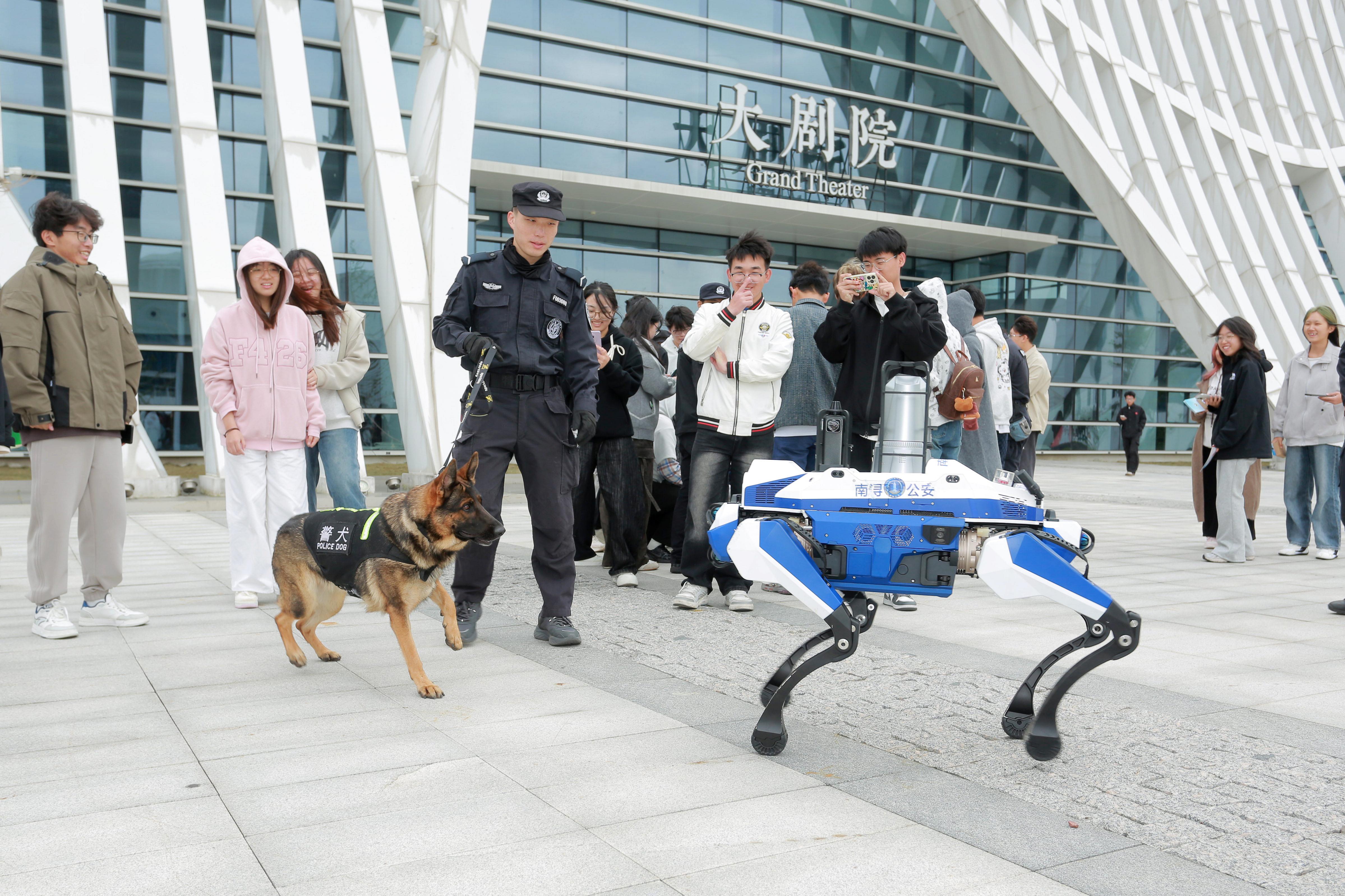 學(xué)生小王說:“第一次近距離看到緝毒犬和機(jī)器狗,感覺特別震撼!緝毒犬特別靈敏,馴導(dǎo)員剛把藏了模擬毒品的箱子擺好,它立馬就聞著味兒湊過去,尾巴還輕輕晃,又專業(yè)又可愛;機(jī)器狗更讓我眼前一亮,它能靈活穿梭在市集的桌椅之間,攝像頭實(shí)時(shí)傳輸畫面,還能根據(jù)指令停下來‘檢查’,科技感滿滿?!?/p>