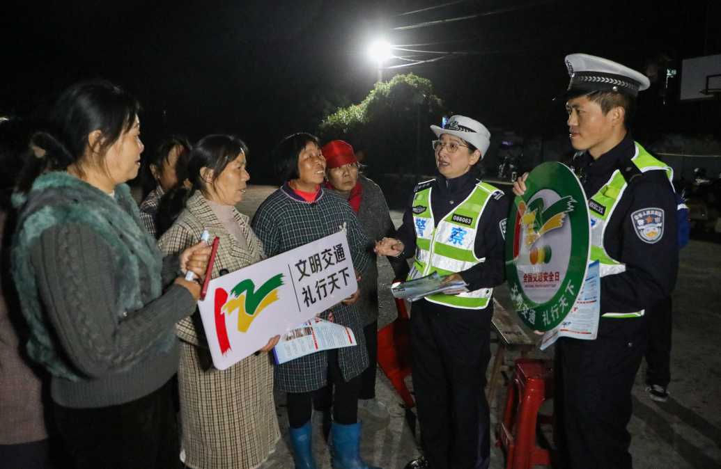 第14個(gè)122“全國(guó)交通安全日”將至,江西省橫峰縣公安局交管大隊(duì)組織民輔警深入轄區(qū)鄉(xiāng)鎮(zhèn),開(kāi)展道路交通安全宣傳“夜話會(huì)”活動(dòng),通過(guò)嘮家常、以案釋法、現(xiàn)場(chǎng)互動(dòng)等方式,向村民面對(duì)面宣講道路交通安全法律法規(guī),引導(dǎo)大家自覺(jué)摒棄交通陋習(xí),安全文明出行。