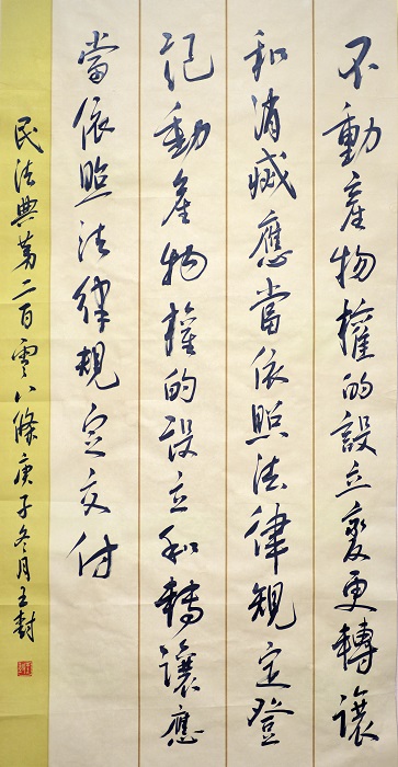 “書·法”活動(dòng)以書寫《中華人民共和國民法典》法條開筆,未來將對(duì)準(zhǔn)更多的法律。