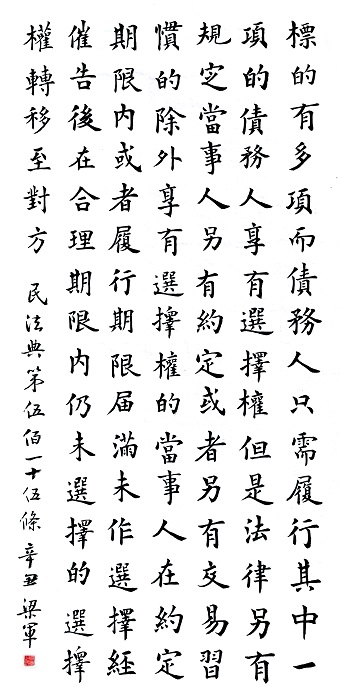 民法典第五百一十五條 標(biāo)的有多項(xiàng)而債務(wù)人只需履行其中一項(xiàng)的,債務(wù)人享有選擇權(quán);但是,法律另有規(guī)定、當(dāng)事人另有約定或者另有交易習(xí)慣的除外。