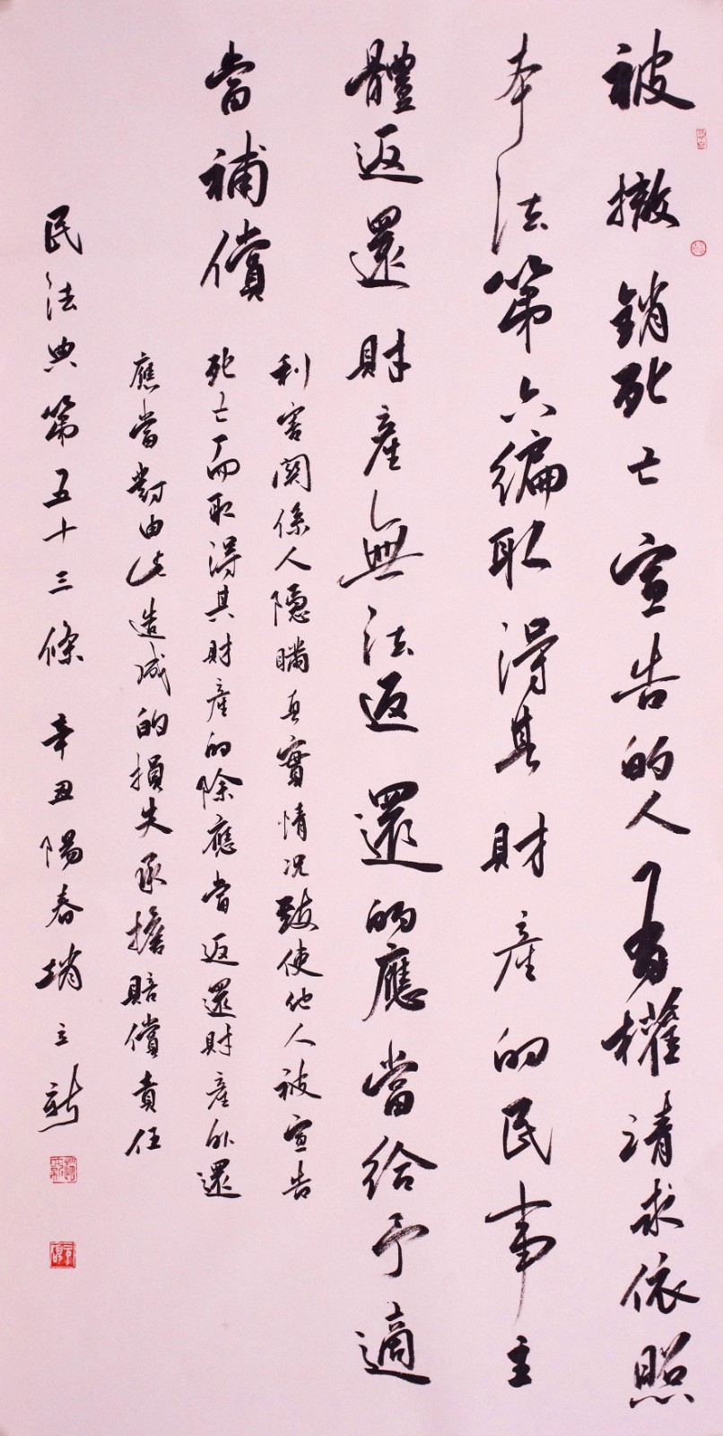 “書·法”活動(dòng)以書寫《中華人民共和國民法典》法條開筆,未來將對準(zhǔn)更多的法律。
