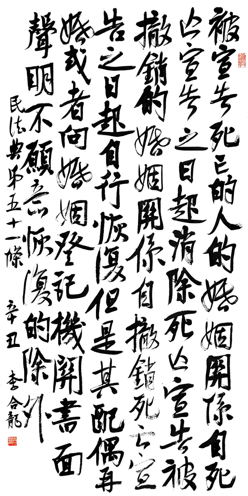 “書·法”活動以書寫《中華人民共和國民法典》法條開筆,未來將對準(zhǔn)更多的法律。