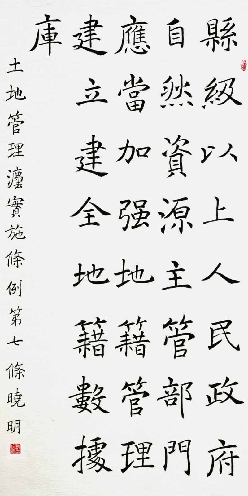 繼1600余位書法家參與書寫《中華人民共和國民法典》全部1260條法條之后,法治日報(bào)社聯(lián)合自然資源部法規(guī)司、自然資源部書畫研究會和北京昌平書法家協(xié)會,將筆端對準(zhǔn)土地管理“一法一條例”,即《中華人民共和國土地管理法》和《中華人民共和國土地管理法實(shí)施條例》。