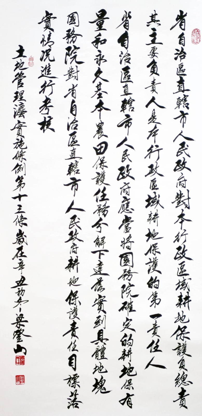 繼1600余位書法家參與書寫《中華人民共和國民法典》全部1260條法條之后,法治日報社聯(lián)合自然資源部法規(guī)司、自然資源部書畫研究會和北京昌平書法家協(xié)會,將筆端對準(zhǔn)土地管理“一法一條例”,即《中華人民共和國土地管理法》和《中華人民共和國土地管理法實施條例》。