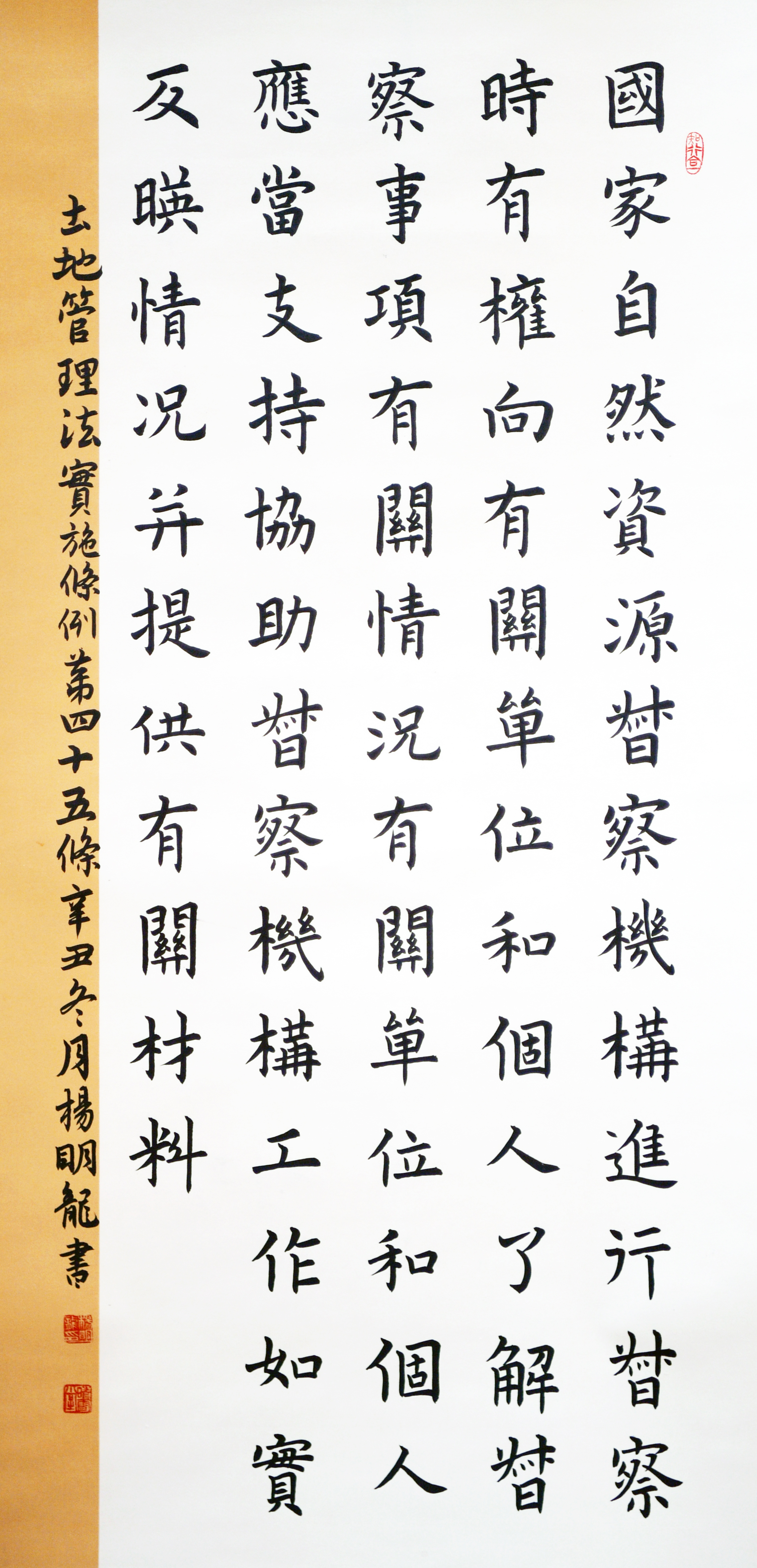 繼1600余位書法家參與書寫《中華人民共和國(guó)民法典》全部1260條法條之后,法治日?qǐng)?bào)社聯(lián)合自然資源部法規(guī)司、自然資源部書畫研究會(huì)和北京昌平書法家協(xié)會(huì),將筆端對(duì)準(zhǔn)土地管理“一法一條例”,即《中華人民共和國(guó)土地管理法》和《中華人民共和國(guó)土地管理法實(shí)施條例》。
