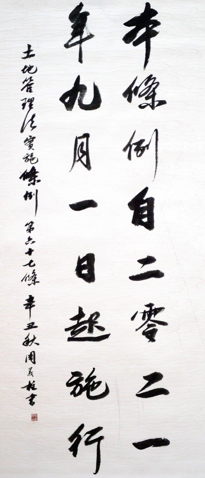 繼1600余位書法家參與書寫《中華人民共和國民法典》全部1260條法條之后,法治日報社聯(lián)合自然資源部法規(guī)司、自然資源部書畫研究會和北京昌平書法家協(xié)會,將筆端對準(zhǔn)土地管理“一法一條例”,即《中華人民共和國土地管理法》和《中華人民共和國土地管理法實施條例》。