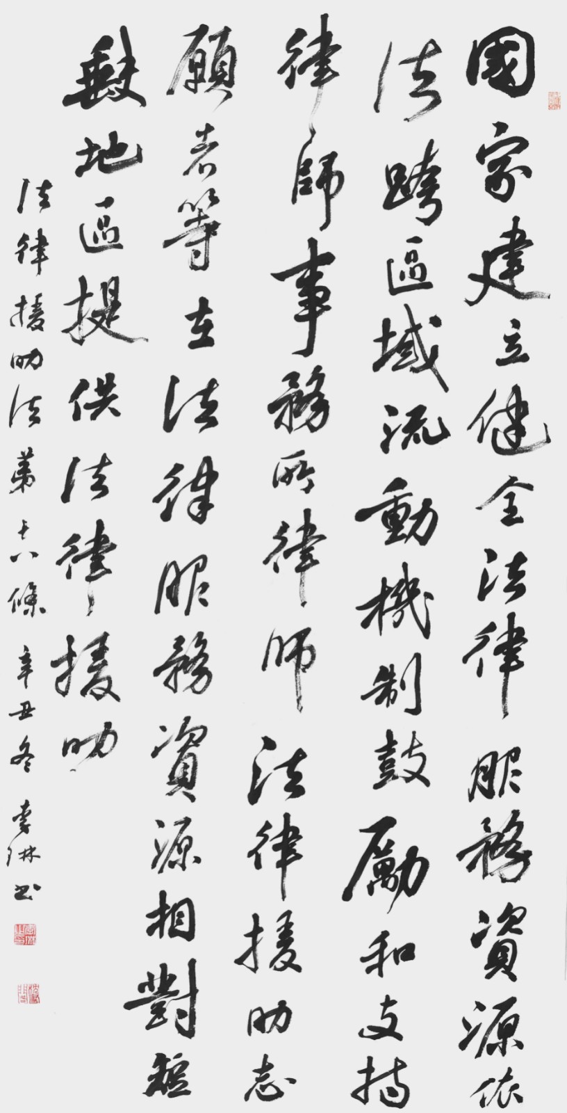 “書·法”活動(dòng)旨在為創(chuàng)新法治宣傳教育,多開一點(diǎn)腦洞、多花一點(diǎn)心思、多出一點(diǎn)力量、多做一點(diǎn)貢獻(xiàn),引領(lǐng)和推動(dòng)更多的人拿起筆來學(xué)法、寫法,在不斷“書·法”過程中,提升自身的法治素養(yǎng),在全社會(huì)弘揚(yáng)法治精神。