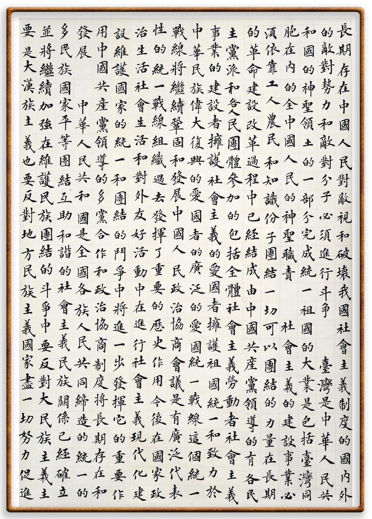 中華人民共和國(guó)是全國(guó)各族人民共同締造的統(tǒng)一的多民族國(guó)家。平等團(tuán)結(jié)互助和諧的社會(huì)主義民族關(guān)系已經(jīng)確立,并將繼續(xù)加強(qiáng)。在維護(hù)民族團(tuán)結(jié)的斗爭(zhēng)中,要反對(duì)大民族主義,主要是大漢族主義,也要反對(duì)地方民族主義。國(guó)家盡一切努力,促進(jìn)全國(guó)各民族的共同繁榮。