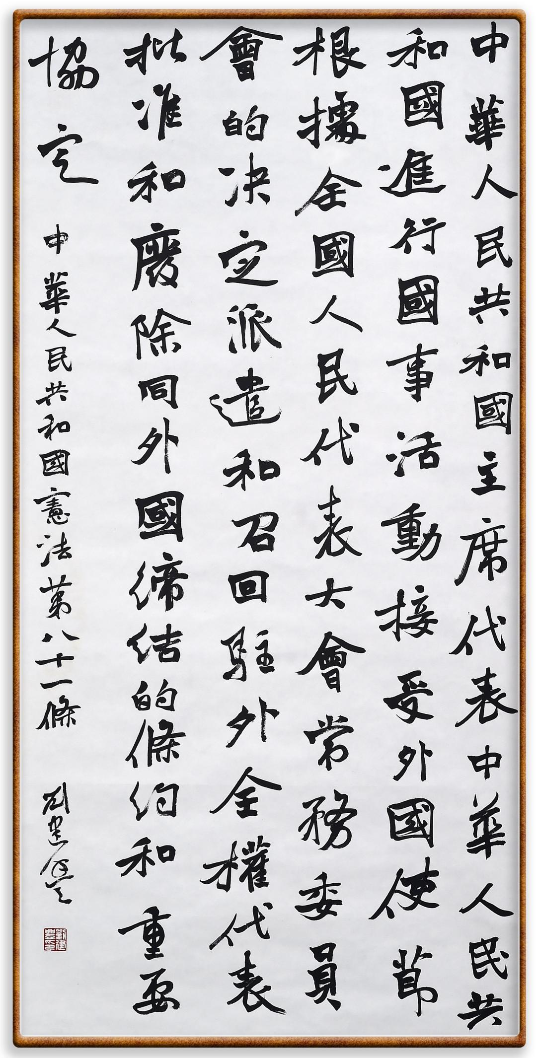 繼《中華人民共和國(guó)民法典》《中華人民共和國(guó)土地管理法》《中華人民共和國(guó)土地管理法實(shí)施條例》《中華人民共和國(guó)法律援助法》之后,法治日?qǐng)?bào)社聯(lián)合北京市司法局、北京書(shū)法家協(xié)會(huì),將筆端對(duì)準(zhǔn)《中華人民共和國(guó)憲法》和《中華人民共和國(guó)行政處罰法》。