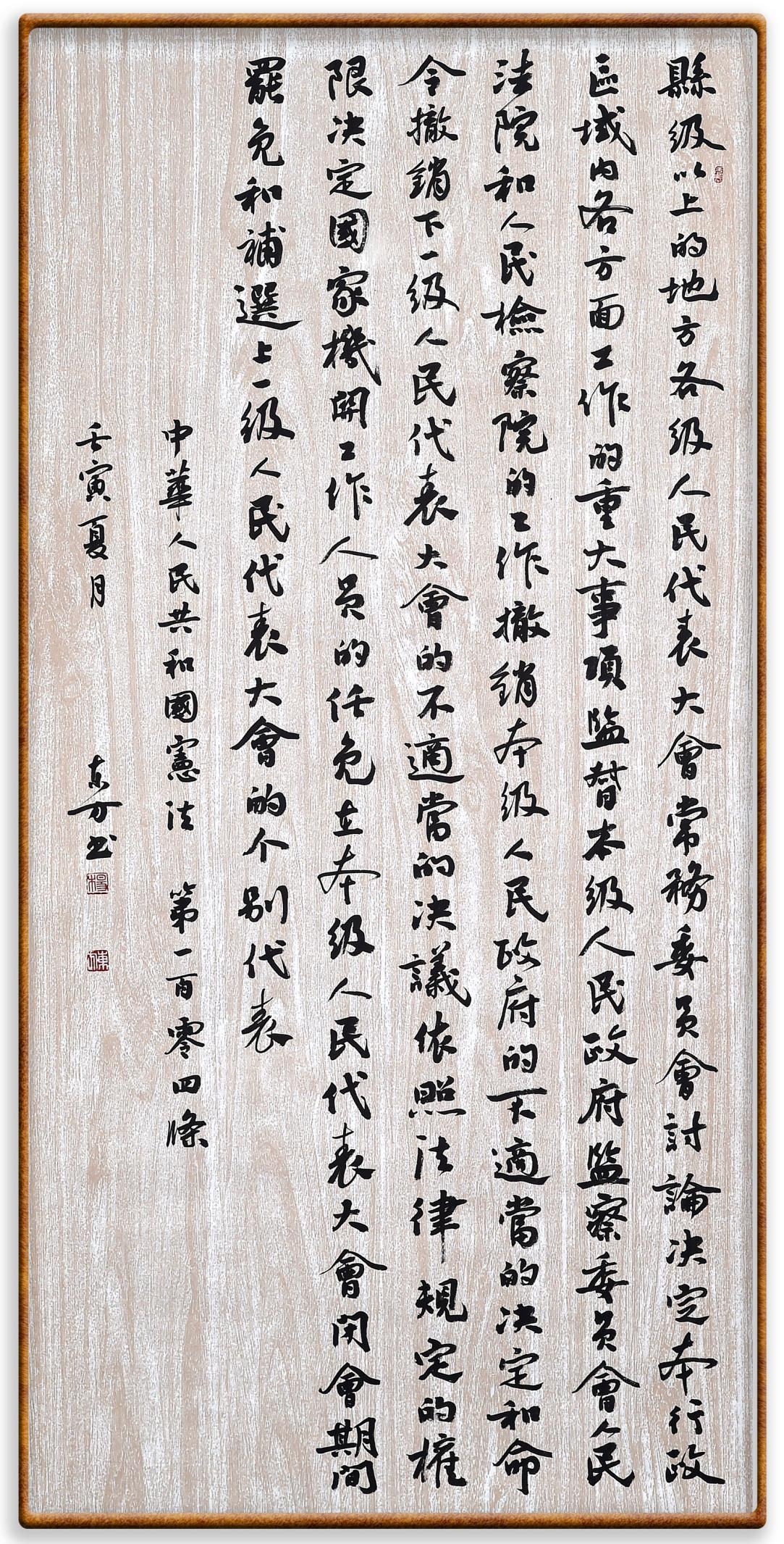 繼《中華人民共和國民法典》《中華人民共和國土地管理法》《中華人民共和國土地管理法實施條例》《中華人民共和國法律援助法》之后,法治日報社聯(lián)合北京市司法局、北京書法家協(xié)會,將筆端對準(zhǔn)《中華人民共和國憲法》和《中華人民共和國行政處罰法》。