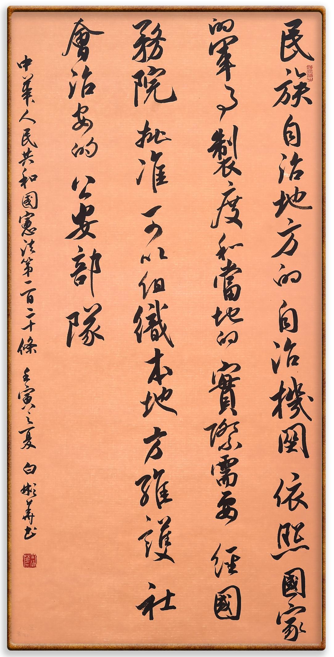 繼《中華人民共和國民法典》《中華人民共和國土地管理法》《中華人民共和國土地管理法實(shí)施條例》《中華人民共和國法律援助法》之后,法治日?qǐng)?bào)社聯(lián)合北京市司法局、北京書法家協(xié)會(huì),將筆端對(duì)準(zhǔn)《中華人民共和國憲法》和《中華人民共和國行政處罰法》。