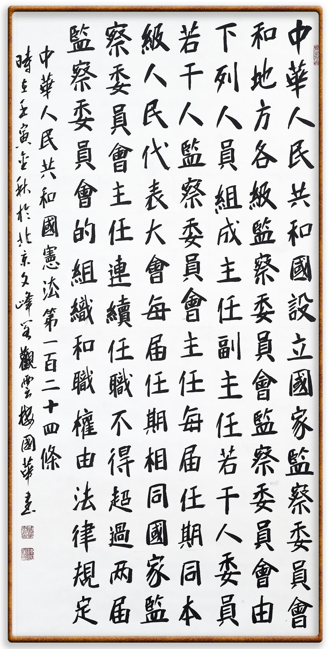 繼《中華人民共和國(guó)民法典》《中華人民共和國(guó)土地管理法》《中華人民共和國(guó)土地管理法實(shí)施條例》《中華人民共和國(guó)法律援助法》之后,法治日?qǐng)?bào)社聯(lián)合北京市司法局、北京書(shū)法家協(xié)會(huì),將筆端對(duì)準(zhǔn)《中華人民共和國(guó)憲法》和《中華人民共和國(guó)行政處罰法》。