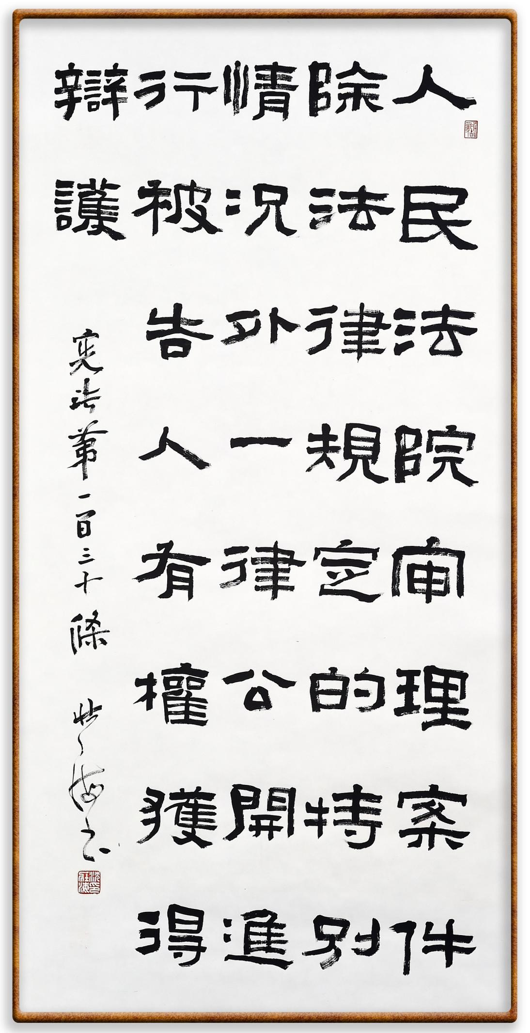 繼《中華人民共和國民法典》《中華人民共和國土地管理法》《中華人民共和國土地管理法實施條例》《中華人民共和國法律援助法》之后,法治日報社聯(lián)合北京市司法局、北京書法家協(xié)會,將筆端對準《中華人民共和國憲法》和《中華人民共和國行政處罰法》。