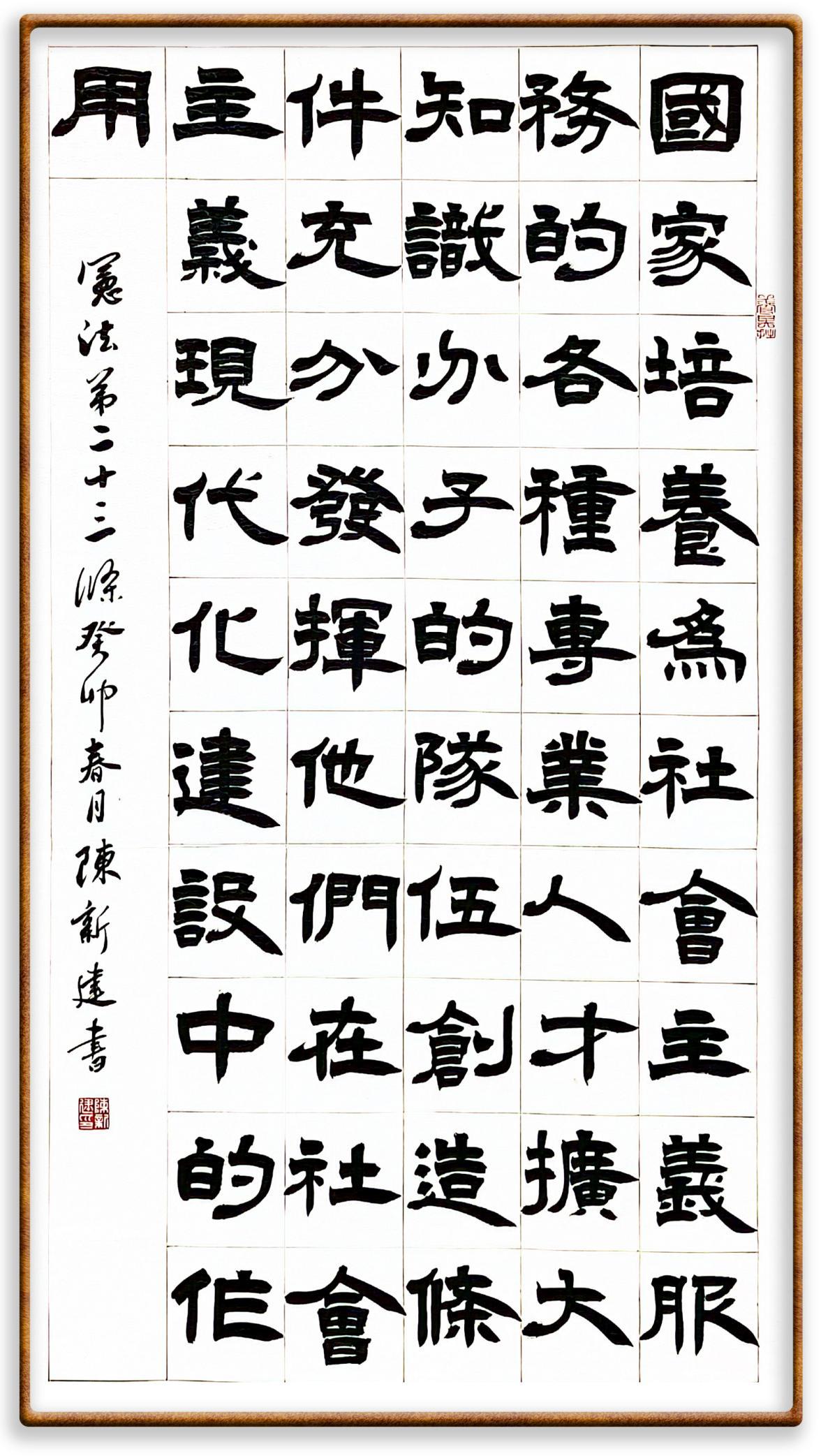 繼《中華人民共和國民法典》《中華人民共和國土地管理法》《中華人民共和國土地管理法實(shí)施條例》《中華人民共和國法律援助法》之后,法治日?qǐng)?bào)社聯(lián)合北京市司法局、北京書法家協(xié)會(huì),將筆端對(duì)準(zhǔn)《中華人民共和國憲法》和《中華人民共和國行政處罰法》。