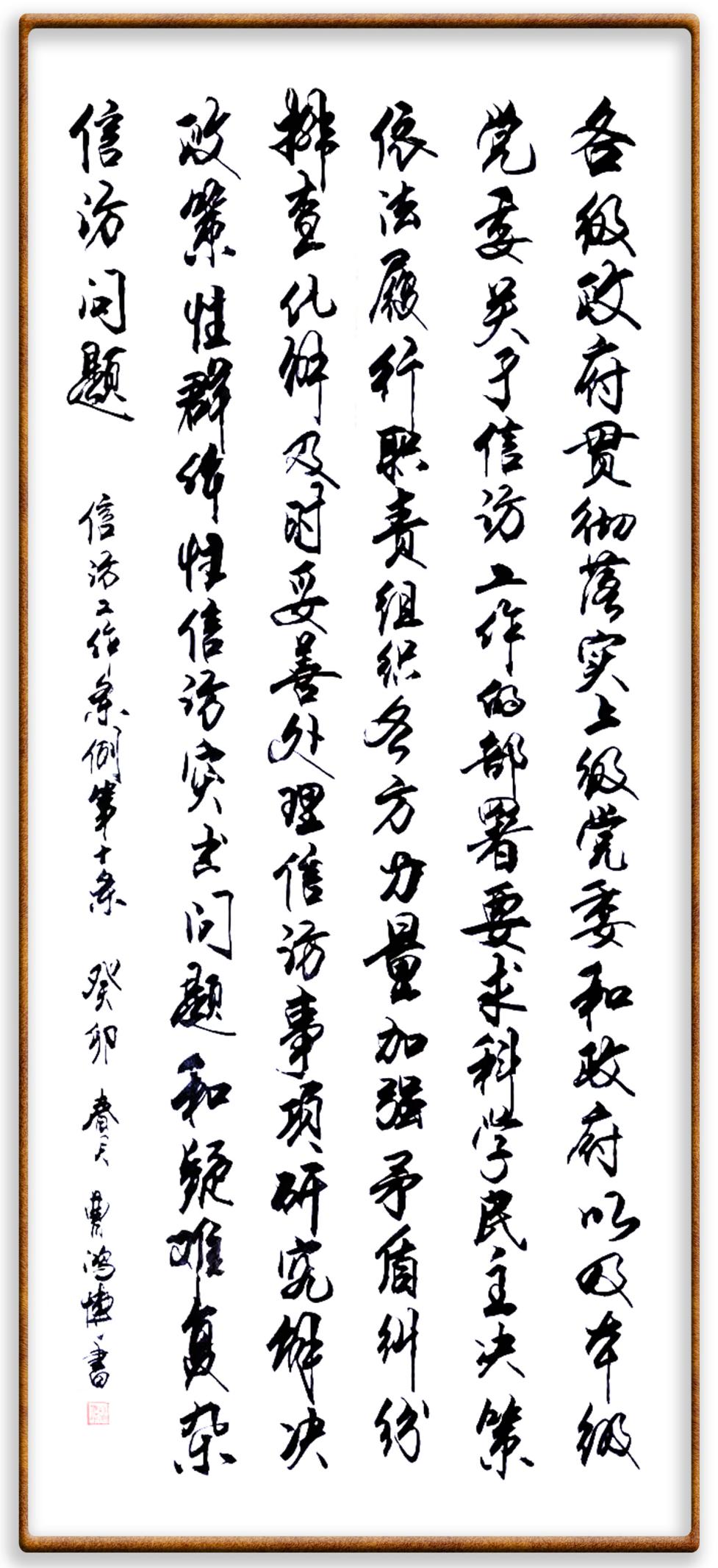 信訪工作條例第十條 各級(jí)政府貫徹落實(shí)上級(jí)黨委和政府以及本級(jí)黨委關(guān)于信訪工作的部署要求,科學(xué)民主決策、依法履行職責(zé),組織各方力量加強(qiáng)矛盾糾紛排查化解,及時(shí)妥善處理信訪事項(xiàng),研究解決政策性、群體性信訪突出問(wèn)題和疑難復(fù)雜信訪問(wèn)題。