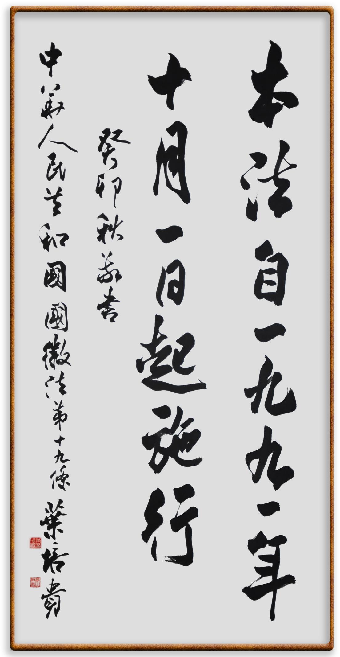國徽法第十九條 本法自1991年10月1日起施行。
