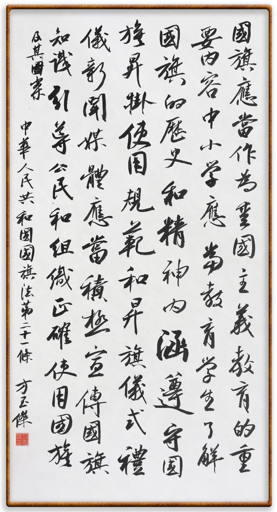 中小學(xué)應(yīng)當(dāng)教育學(xué)生了解國(guó)旗的歷史和精神內(nèi)涵、遵守國(guó)旗升掛使用規(guī)范和升旗儀式禮儀。