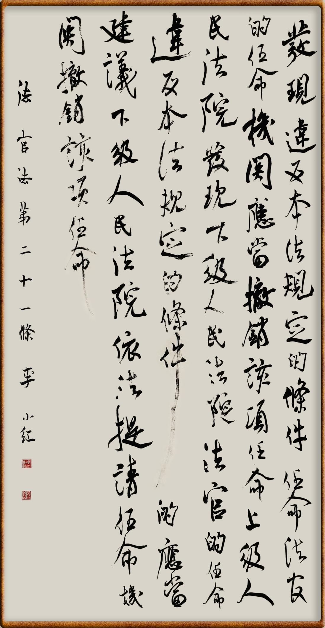 李小紅,中國(guó)法官文聯(lián)書法專業(yè)委員會(huì)會(huì)員,廣東省韶關(guān)市書法家協(xié)會(huì)會(huì)員,始興縣人民法院綜合辦公室干警。