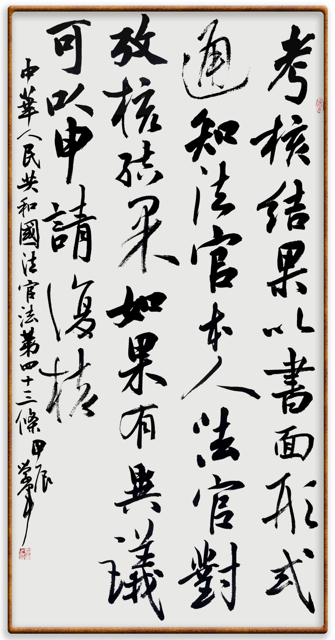 法官法第四十三條 考核結(jié)果以書面形式通知法官本人。法官對考核結(jié)果如果有異議,可以申請復(fù)核。