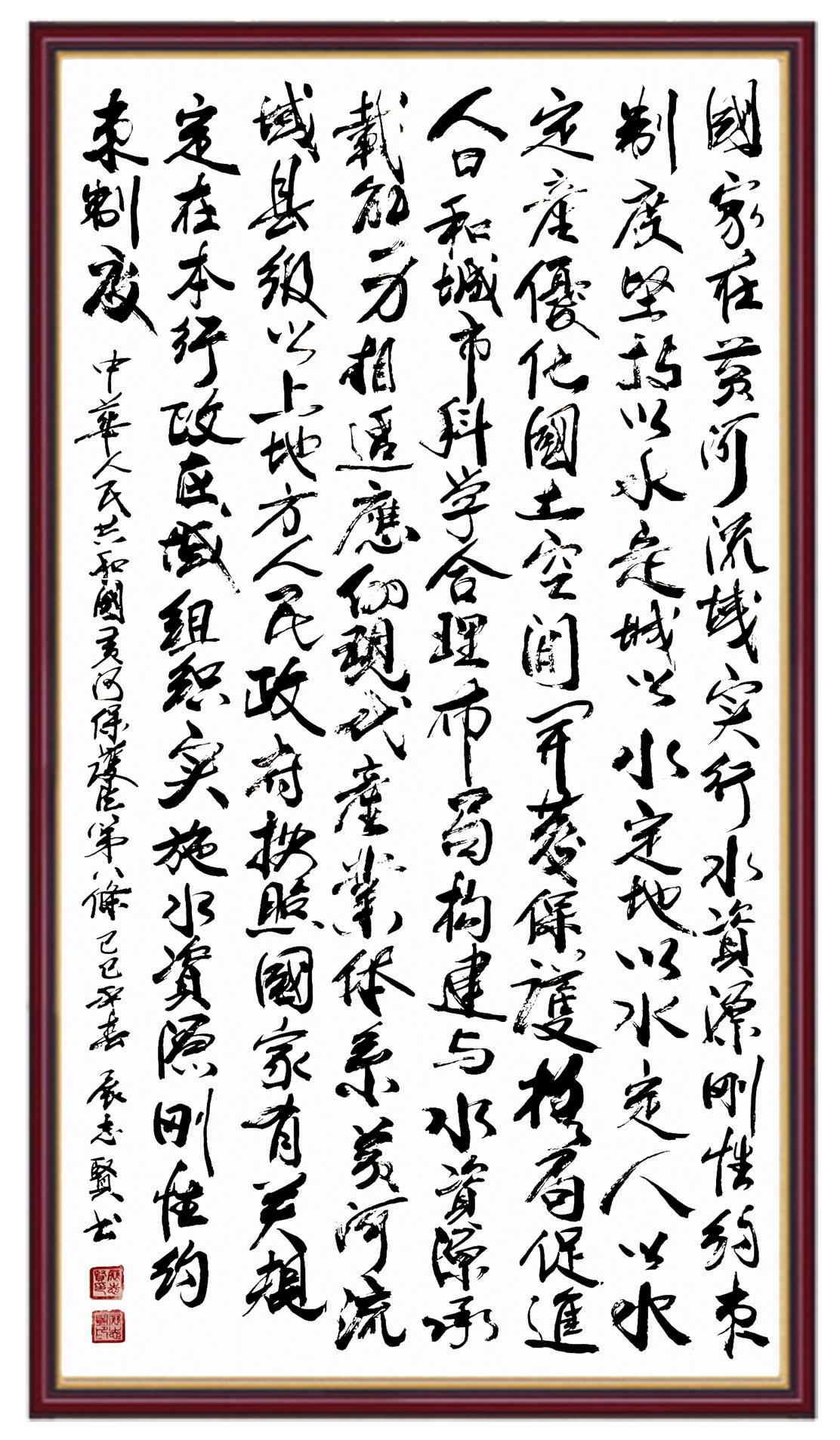 黃河寧,天下平。黃河是中華民族的發(fā)源地和搖籃,保護(hù)黃河是事關(guān)中華民族偉大復(fù)興的千秋大計(jì)。《中華人民共和國黃河保護(hù)法》為推進(jìn)水資源節(jié)約集約利用、保護(hù)傳承弘揚(yáng)黃河文化、推動(dòng)黃河流域生態(tài)保護(hù)和高質(zhì)量發(fā)展提供了有力法治保障。繼書寫《中華人民共和國民法典》《中華人民共和國憲法》《中華人民共和國澳門特別行政區(qū)基本法》《中華人民共和國香港特別行政區(qū)基本法》《中華人民共和國國旗法》《中華人民共和國國徽法》《中華人民共和國國歌法》《中華人民共和國法官法》等法律法規(guī)之后,法制日?qǐng)?bào)社聯(lián)合沿黃九?。▍^(qū))司法廳、書法家協(xié)會(huì),將筆端對(duì)準(zhǔn)《中華人民共和國黃河保護(hù)法》。