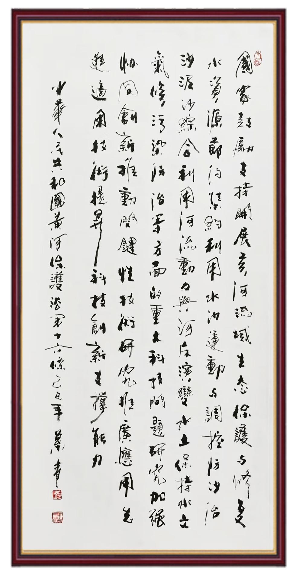 黃河寧,天下平。黃河是中華民族的發(fā)源地和搖籃,保護(hù)黃河是事關(guān)中華民族偉大復(fù)興的千秋大計(jì)?!吨腥A人民共和國(guó)黃河保護(hù)法》為推進(jìn)水資源節(jié)約集約利用、保護(hù)傳承弘揚(yáng)黃河文化、推動(dòng)黃河流域生態(tài)保護(hù)和高質(zhì)量發(fā)展提供了有力法治保障。繼書寫《中華人民共和國(guó)民法典》《中華人民共和國(guó)憲法》《中華人民共和國(guó)澳門特別行政區(qū)基本法》《中華人民共和國(guó)香港特別行政區(qū)基本法》《中華人民共和國(guó)國(guó)旗法》《中華人民共和國(guó)國(guó)徽法》《中華人民共和國(guó)國(guó)歌法》《中華人民共和國(guó)法官法》等法律法規(guī)之后,法制日?qǐng)?bào)社聯(lián)合沿黃九?。▍^(qū))司法廳、書法家協(xié)會(huì),將筆端對(duì)準(zhǔn)《中華人民共和國(guó)黃河保護(hù)法》。