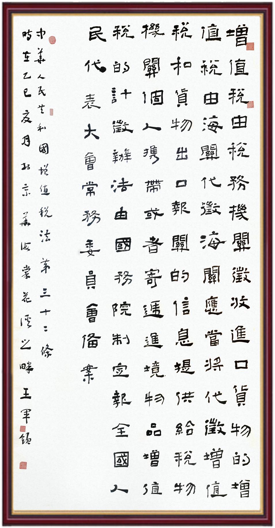 稅收一頭連著國計(jì),一頭連著民生。全面推進(jìn)依法治稅,是全面依法治國基本方略在稅收領(lǐng)域的集中體現(xiàn)。《中華人民共和國增值稅法》將于2026年1月1日起施行,對全面落實(shí)稅收法定原則、健全有利于高質(zhì)量發(fā)展的增值稅制度、規(guī)范增值稅的征收和繳納、保護(hù)納稅人合法權(quán)益具有重要意義。繼書寫《中華人民共和國民法典》《中華人民共和國憲法》《中華人民共和國國旗法》《中華人民共和國國徽法》《中華人民共和國國歌法》《中華人民共和國法官法》《中華人民共和國黃河保護(hù)法》等法律法規(guī)之后,法制日報(bào)社將筆端對準(zhǔn)《中華人民共和國增值稅法》。