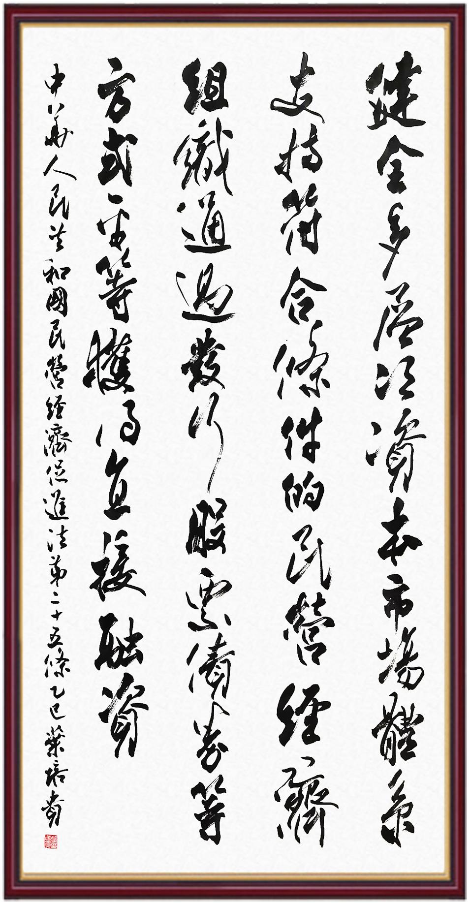 《中華人民共和國民營經(jīng)濟促進法》自今年5月20日起施行。作為我國首部專門關(guān)于民營經(jīng)濟發(fā)展的基礎性法律,民營經(jīng)濟促進法將支持和保障民營經(jīng)濟發(fā)展的法律制度融入中國特色社會主義法律體系,具有重大的法治意義,為促進民營經(jīng)濟持續(xù)、健康、高質(zhì)量發(fā)展提供了堅實的法治保障。為更好地學習、宣傳、貫徹這部法律,法治日報社聯(lián)合司法部普法與依法治理局,開展“‘書·法’系列活動之書寫《中華人民共和國民營經(jīng)濟促進法》”活動。