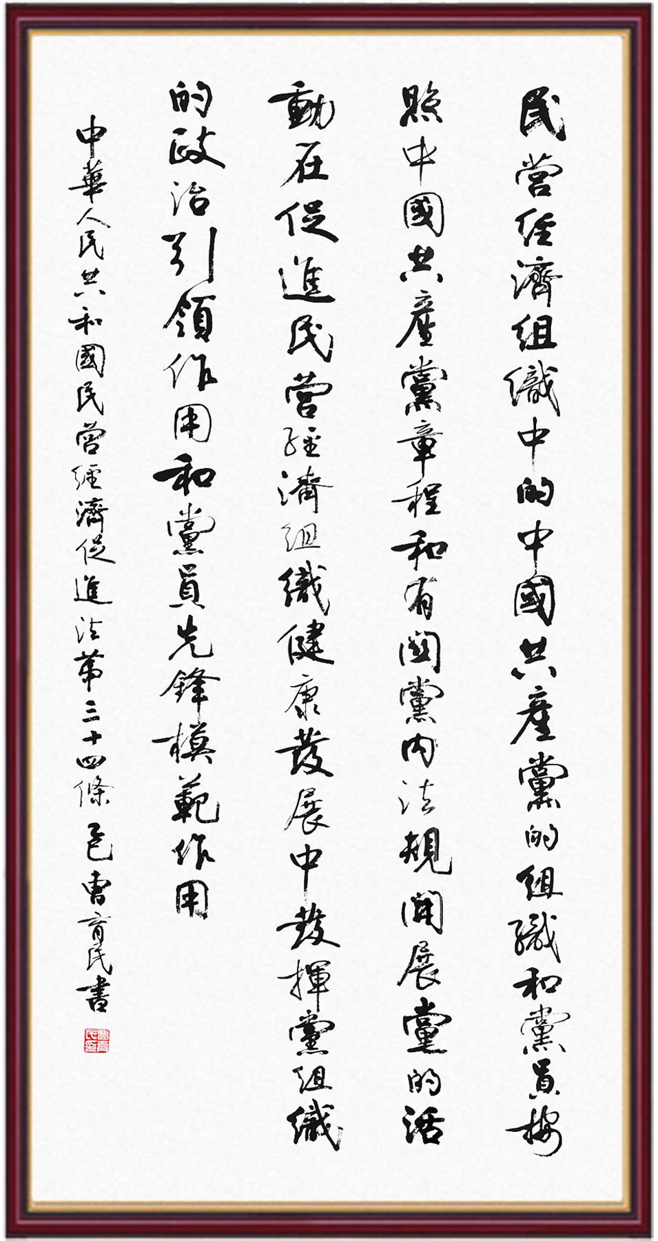《中華人民共和國(guó)民營(yíng)經(jīng)濟(jì)促進(jìn)法》自今年5月20日起施行。作為我國(guó)首部專門關(guān)于民營(yíng)經(jīng)濟(jì)發(fā)展的基礎(chǔ)性法律,民營(yíng)經(jīng)濟(jì)促進(jìn)法將支持和保障民營(yíng)經(jīng)濟(jì)發(fā)展的法律制度融入中國(guó)特色社會(huì)主義法律體系,具有重大的法治意義,為促進(jìn)民營(yíng)經(jīng)濟(jì)持續(xù)、健康、高質(zhì)量發(fā)展提供了堅(jiān)實(shí)的法治保障。為更好地學(xué)習(xí)、宣傳、貫徹這部法律,法治日?qǐng)?bào)社聯(lián)合司法部普法與依法治理局,開展“‘書·法’系列活動(dòng)之書寫《中華人民共和國(guó)民營(yíng)經(jīng)濟(jì)促進(jìn)法》”活動(dòng)。