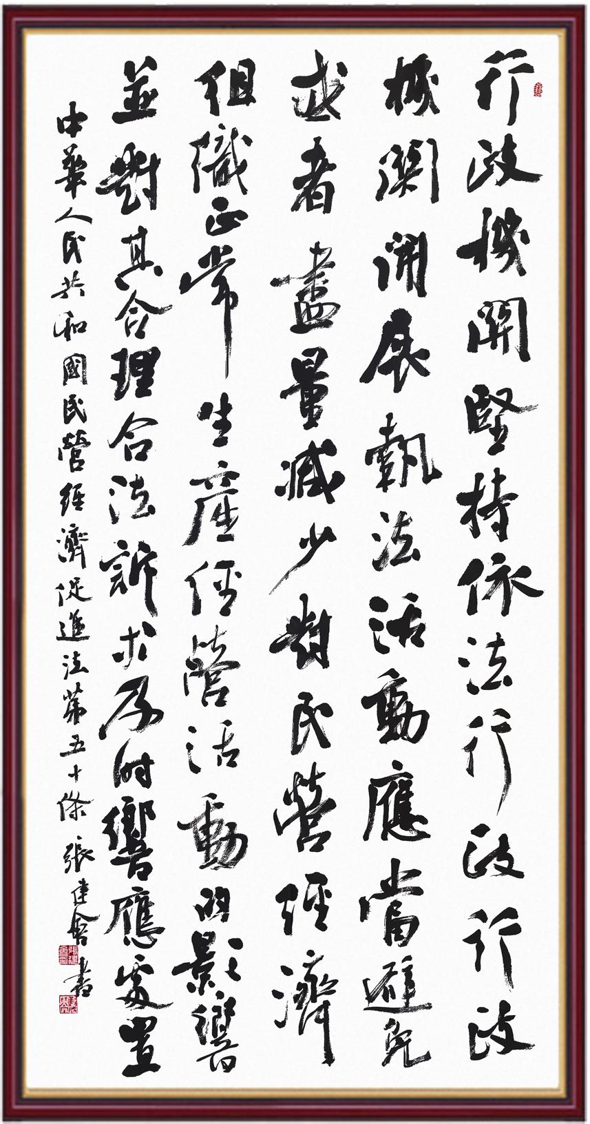 《中華人民共和國民營經(jīng)濟(jì)促進(jìn)法》自今年5月20日起施行。作為我國首部專門關(guān)于民營經(jīng)濟(jì)發(fā)展的基礎(chǔ)性法律,民營經(jīng)濟(jì)促進(jìn)法將支持和保障民營經(jīng)濟(jì)發(fā)展的法律制度融入中國特色社會(huì)主義法律體系,具有重大的法治意義,為促進(jìn)民營經(jīng)濟(jì)持續(xù)、健康、高質(zhì)量發(fā)展提供了堅(jiān)實(shí)的法治保障。為更好地學(xué)習(xí)、宣傳、貫徹這部法律,法治日?qǐng)?bào)社聯(lián)合司法部普法與依法治理局,開展“‘書·法’系列活動(dòng)之書寫《中華人民共和國民營經(jīng)濟(jì)促進(jìn)法》”活動(dòng)。