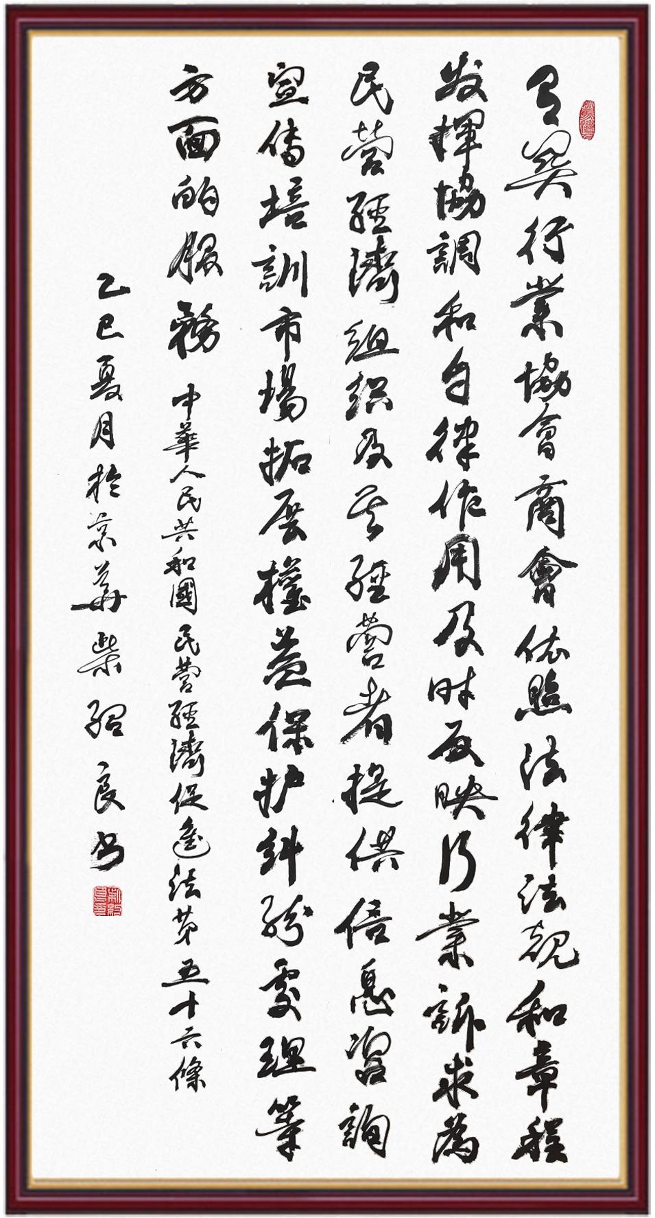 《中華人民共和國民營經(jīng)濟(jì)促進(jìn)法》自今年5月20日起施行。作為我國首部專門關(guān)于民營經(jīng)濟(jì)發(fā)展的基礎(chǔ)性法律,民營經(jīng)濟(jì)促進(jìn)法將支持和保障民營經(jīng)濟(jì)發(fā)展的法律制度融入中國特色社會(huì)主義法律體系,具有重大的法治意義,為促進(jìn)民營經(jīng)濟(jì)持續(xù)、健康、高質(zhì)量發(fā)展提供了堅(jiān)實(shí)的法治保障。為更好地學(xué)習(xí)、宣傳、貫徹這部法律,法治日報(bào)社聯(lián)合司法部普法與依法治理局,開展“‘書·法’系列活動(dòng)之書寫《中華人民共和國民營經(jīng)濟(jì)促進(jìn)法》”活動(dòng)。