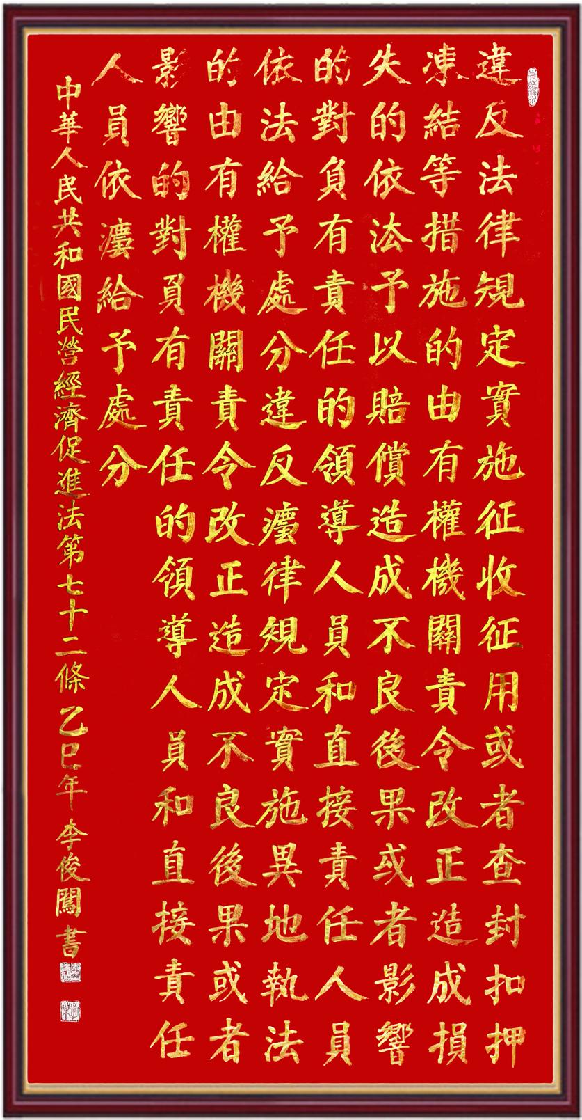 《中華人民共和國(guó)民營(yíng)經(jīng)濟(jì)促進(jìn)法》自今年5月20日起施行。作為我國(guó)首部專門關(guān)于民營(yíng)經(jīng)濟(jì)發(fā)展的基礎(chǔ)性法律,民營(yíng)經(jīng)濟(jì)促進(jìn)法將支持和保障民營(yíng)經(jīng)濟(jì)發(fā)展的法律制度融入中國(guó)特色社會(huì)主義法律體系,具有重大的法治意義,為促進(jìn)民營(yíng)經(jīng)濟(jì)持續(xù)、健康、高質(zhì)量發(fā)展提供了堅(jiān)實(shí)的法治保障。為更好地學(xué)習(xí)、宣傳、貫徹這部法律,法治日?qǐng)?bào)社聯(lián)合司法部普法與依法治理局,開(kāi)展“‘書(shū)·法’系列活動(dòng)之書(shū)寫(xiě)《中華人民共和國(guó)民營(yíng)經(jīng)濟(jì)促進(jìn)法》”活動(dòng)。
