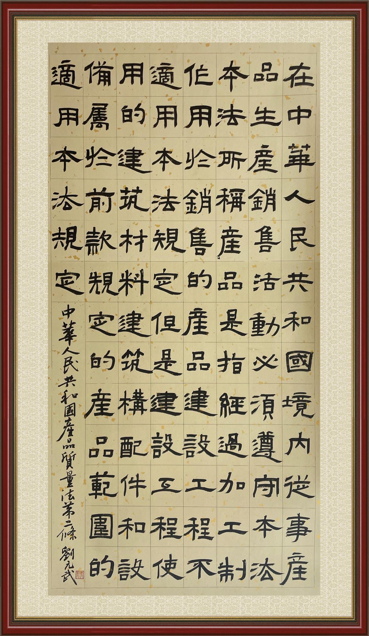 《中華人民共和國(guó)產(chǎn)品質(zhì)量法》自1993年9月1日起開始施行,先后進(jìn)行三次修正。作為產(chǎn)品質(zhì)量領(lǐng)域的基本法律,產(chǎn)品質(zhì)量法對(duì)規(guī)范產(chǎn)品質(zhì)量管理、維護(hù)消費(fèi)者合法權(quán)益、促進(jìn)經(jīng)濟(jì)社會(huì)發(fā)展具有重要意義。為更好地學(xué)習(xí)、宣傳、貫徹這部法律,在國(guó)家市場(chǎng)監(jiān)督管理總局法規(guī)司的支持下,法治日?qǐng)?bào)社開展了“‘書·法’系列活動(dòng)之書寫《中華人民共和國(guó)產(chǎn)品質(zhì)量法》”活動(dòng)。