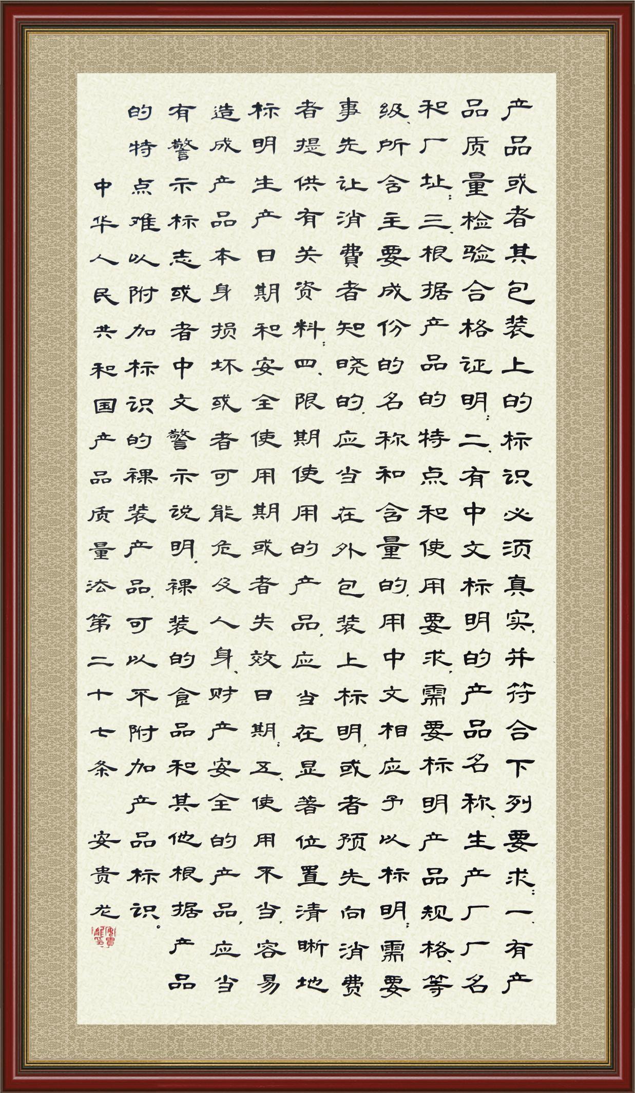 《中華人民共和國(guó)產(chǎn)品質(zhì)量法》自1993年9月1日起開(kāi)始施行,先后進(jìn)行三次修正。作為產(chǎn)品質(zhì)量領(lǐng)域的基本法律,產(chǎn)品質(zhì)量法對(duì)規(guī)范產(chǎn)品質(zhì)量管理、維護(hù)消費(fèi)者合法權(quán)益、促進(jìn)經(jīng)濟(jì)社會(huì)發(fā)展具有重要意義。為更好地學(xué)習(xí)、宣傳、貫徹這部法律,在國(guó)家市場(chǎng)監(jiān)督管理總局法規(guī)司的支持下,法治日?qǐng)?bào)社開(kāi)展了“‘書·法’系列活動(dòng)之書寫《中華人民共和國(guó)產(chǎn)品質(zhì)量法》”活動(dòng)。