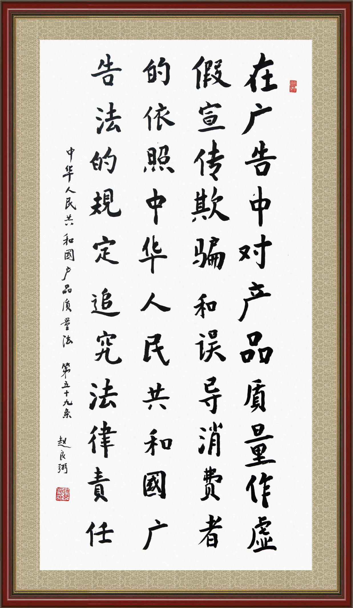 《中華人民共和國產(chǎn)品質(zhì)量法》自1993年9月1日起開始施行,先后進(jìn)行三次修正。作為產(chǎn)品質(zhì)量領(lǐng)域的基本法律,產(chǎn)品質(zhì)量法對(duì)規(guī)范產(chǎn)品質(zhì)量管理、維護(hù)消費(fèi)者合法權(quán)益、促進(jìn)經(jīng)濟(jì)社會(huì)發(fā)展具有重要意義。為更好地學(xué)習(xí)、宣傳、貫徹這部法律,在國家市場監(jiān)督管理總局法規(guī)司的支持下,法治日報(bào)社開展了“‘書·法’系列活動(dòng)之書寫《中華人民共和國產(chǎn)品質(zhì)量法》”活動(dòng)。