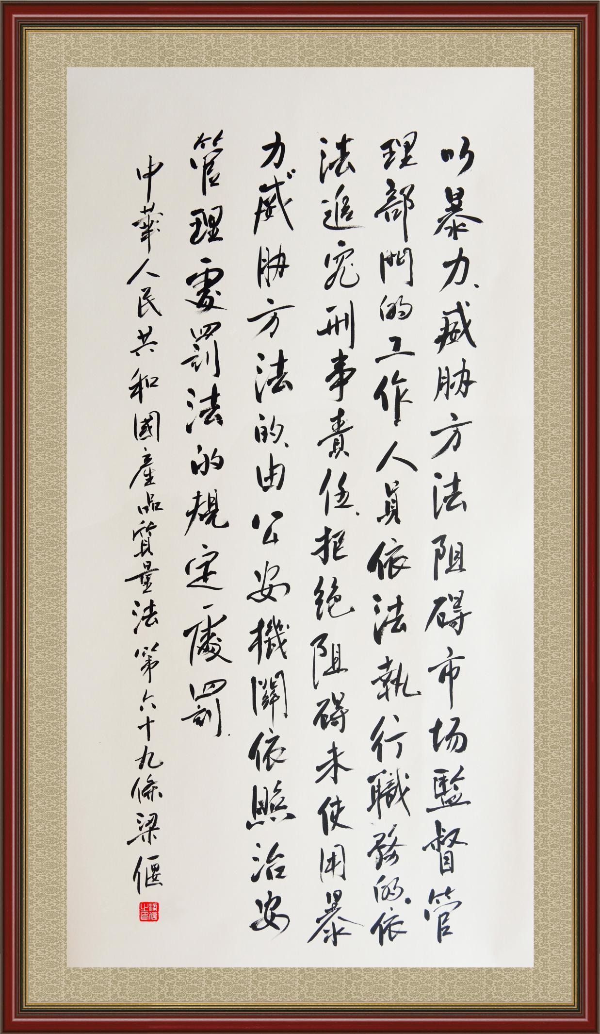 《中華人民共和國(guó)產(chǎn)品質(zhì)量法》自1993年9月1日起開始施行,先后進(jìn)行三次修正。作為產(chǎn)品質(zhì)量領(lǐng)域的基本法律,產(chǎn)品質(zhì)量法對(duì)規(guī)范產(chǎn)品質(zhì)量管理、維護(hù)消費(fèi)者合法權(quán)益、促進(jìn)經(jīng)濟(jì)社會(huì)發(fā)展具有重要意義。為更好地學(xué)習(xí)、宣傳、貫徹這部法律,在國(guó)家市場(chǎng)監(jiān)督管理總局法規(guī)司的支持下,法治日?qǐng)?bào)社開展了“‘書·法’系列活動(dòng)之書寫《中華人民共和國(guó)產(chǎn)品質(zhì)量法》”活動(dòng)。