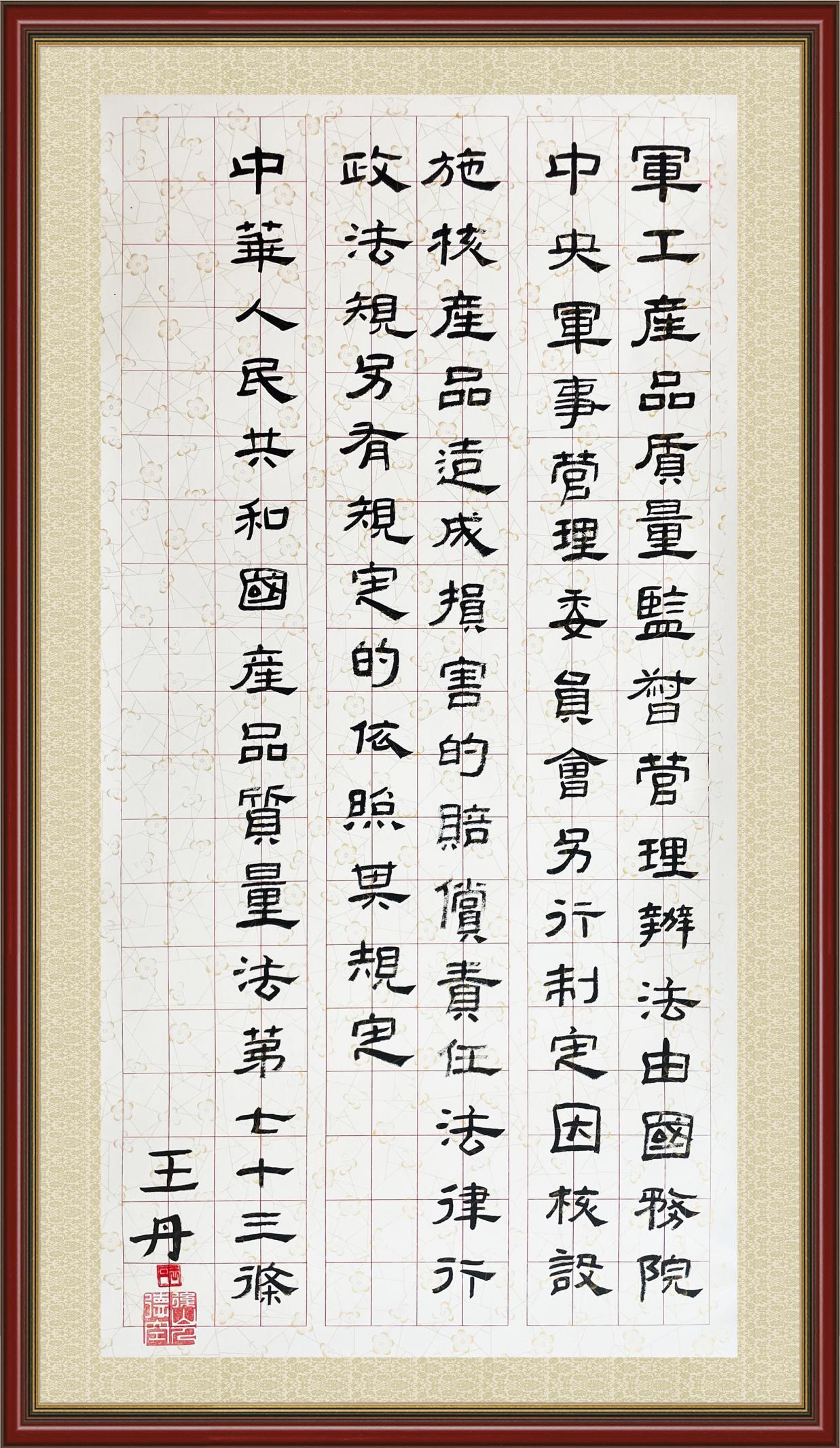 《中華人民共和國產(chǎn)品質(zhì)量法》自1993年9月1日起開始施行,先后進行三次修正。作為產(chǎn)品質(zhì)量領域的基本法律,產(chǎn)品質(zhì)量法對規(guī)范產(chǎn)品質(zhì)量管理、維護消費者合法權益、促進經(jīng)濟社會發(fā)展具有重要意義。為更好地學習、宣傳、貫徹這部法律,在國家市場監(jiān)督管理總局法規(guī)司的支持下,法治日報社開展了“‘書·法’系列活動之書寫《中華人民共和國產(chǎn)品質(zhì)量法》”活動。