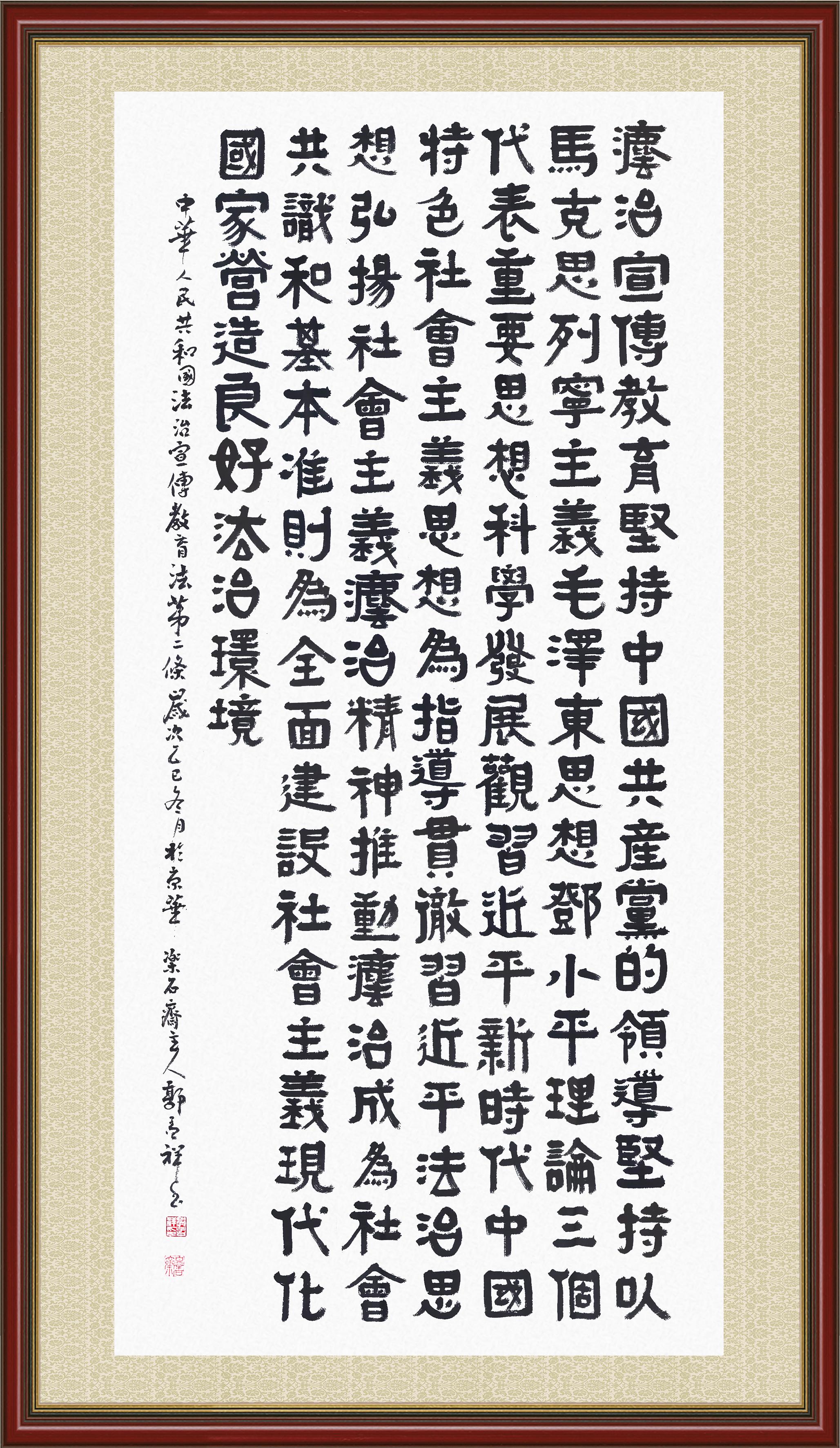 2020年7月11日,由法治日報(bào)社主辦的“書·法”系列活動(dòng)正式啟動(dòng),先后書寫《中華人民共和國民法典》《中華人民共和國憲法》《中華人民共和國民營經(jīng)濟(jì)促進(jìn)法》等21部法律法規(guī)。
