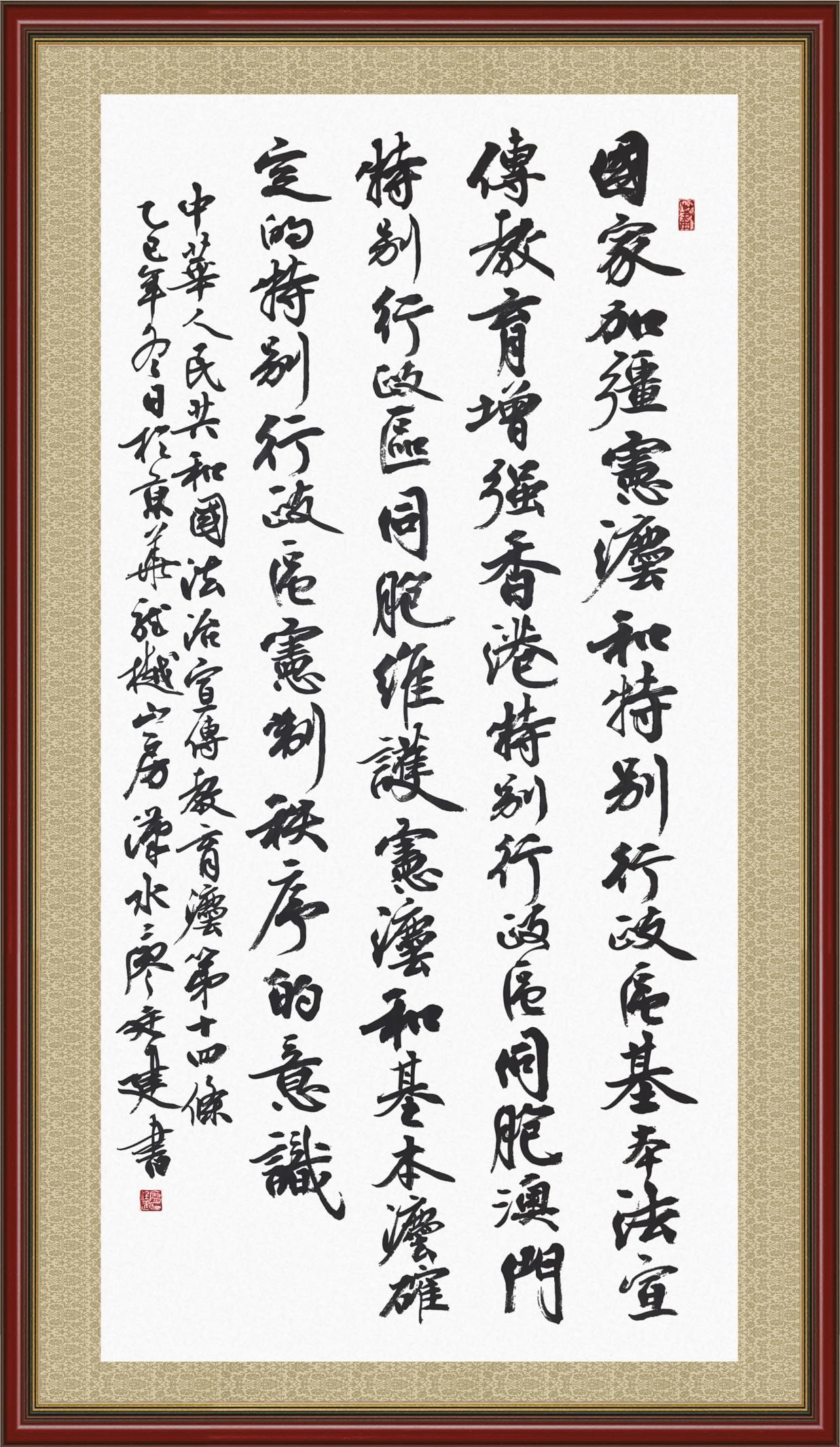 2020年7月11日,由法治日?qǐng)?bào)社主辦的“書(shū)·法”系列活動(dòng)正式啟動(dòng),先后書(shū)寫(xiě)《中華人民共和國(guó)民法典》《中華人民共和國(guó)憲法》《中華人民共和國(guó)民營(yíng)經(jīng)濟(jì)促進(jìn)法》等21部法律法規(guī)。