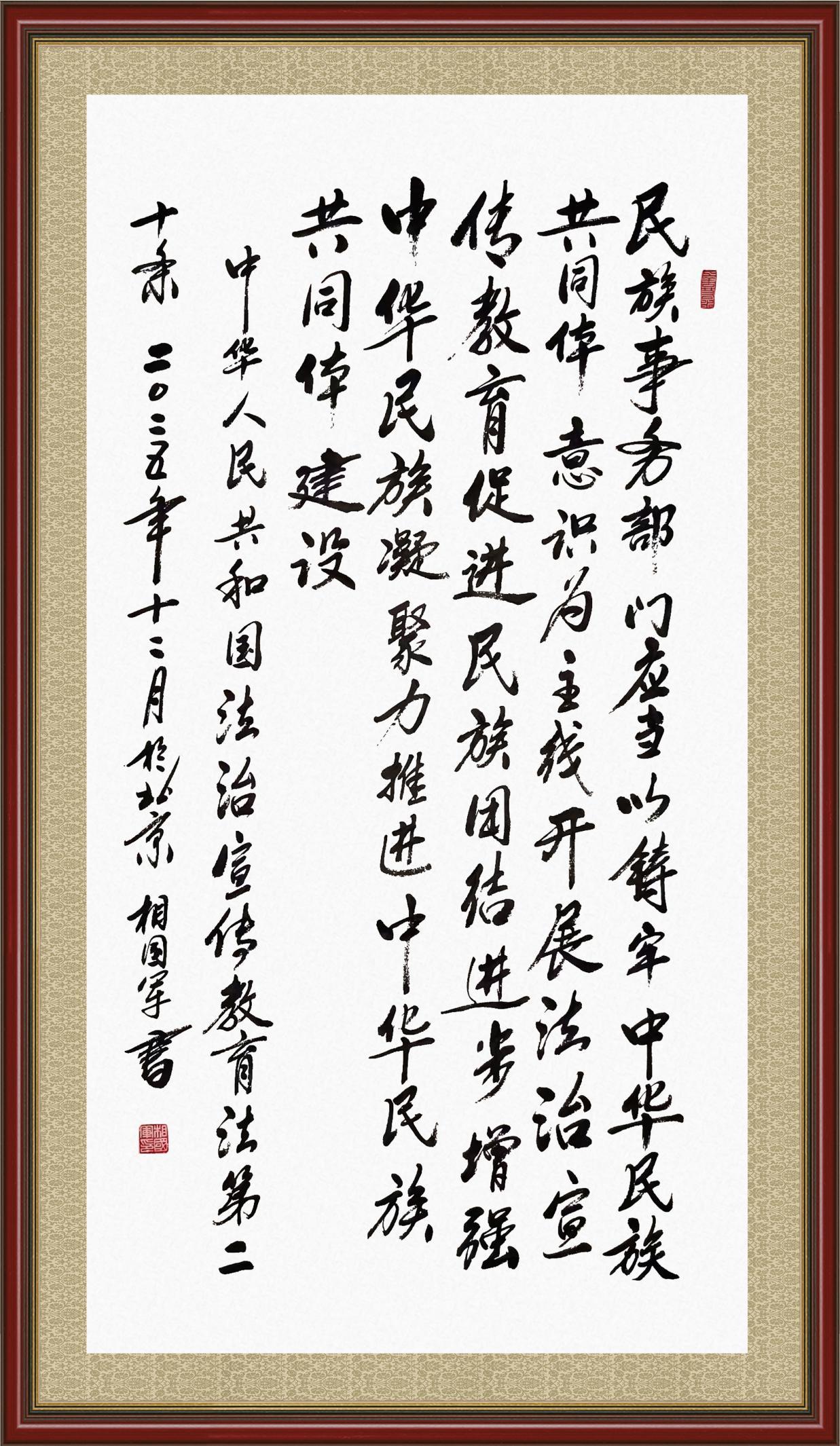 《中華人民共和國(guó)法治宣傳教育法》自2025年11月1日起開(kāi)始施行。法治宣傳教育是全面依法治國(guó)的長(zhǎng)期基礎(chǔ)性工作。法治宣傳教育法對(duì)提升全民法治素養(yǎng)和社會(huì)治理法治化水平、推動(dòng)建設(shè)更高水平的社會(huì)主義法治國(guó)家具有重要意義。為更好地學(xué)習(xí)、宣傳、貫徹這部法律,法治日?qǐng)?bào)社聯(lián)合司法部普法與依法治理局,開(kāi)展了“‘書·法’系列活動(dòng)之書寫《中華人民共和國(guó)法治宣傳教育法》”活動(dòng)。