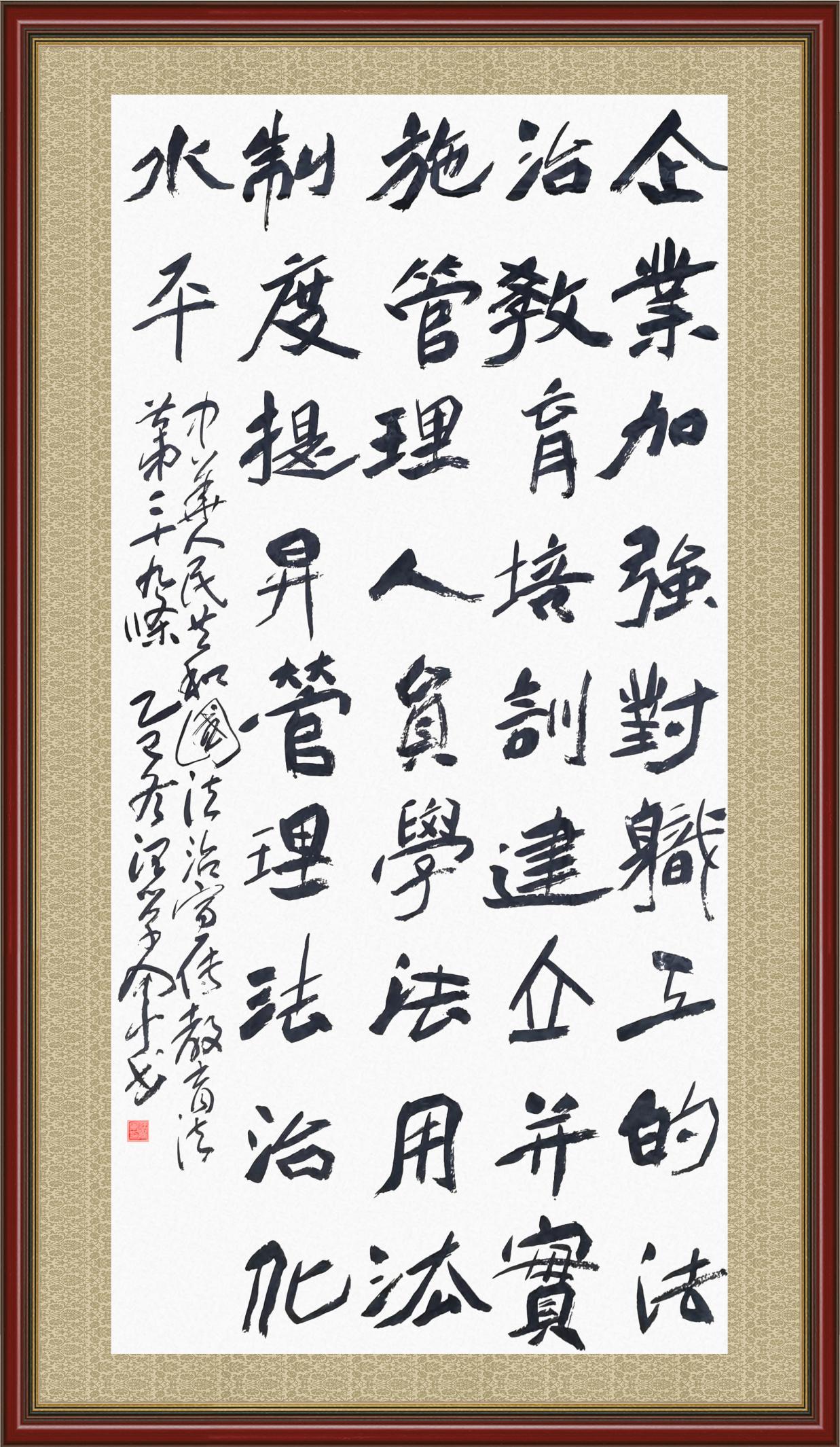 2020年7月11日,由法治日?qǐng)?bào)社主辦的“書(shū)·法”系列活動(dòng)正式啟動(dòng),先后書(shū)寫(xiě)《中華人民共和國(guó)民法典》《中華人民共和國(guó)憲法》《中華人民共和國(guó)民營(yíng)經(jīng)濟(jì)促進(jìn)法》等21部法律法規(guī)。
