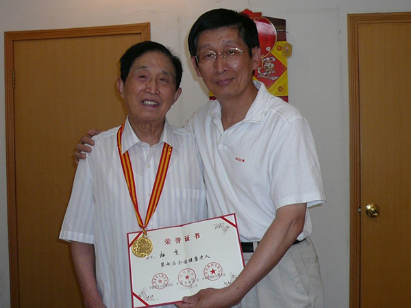 2009年再次被評為第七屆全國健康老人,攝于家中,時年92周歲