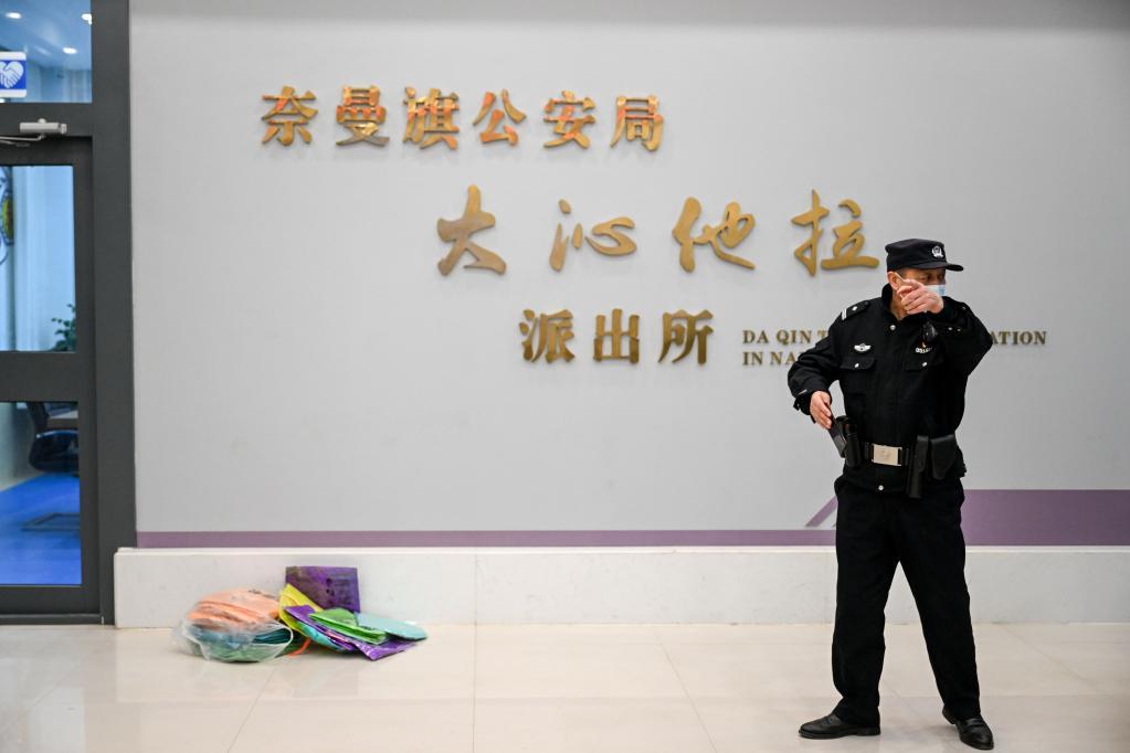 2月5日,通遼市奈曼旗公安局大沁他拉派出所民警們在分流警情。