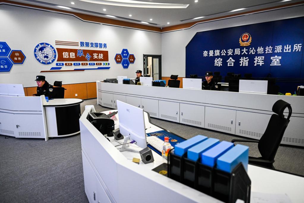 2月5日,通遼市奈曼旗公安局大沁他拉派出所民警們在綜合指揮室值班。
