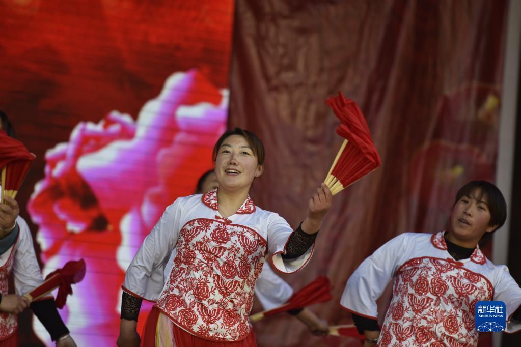 王金莊的村民們在村廣場表演舞蹈。(新華社記者 趙鴻宇攝)